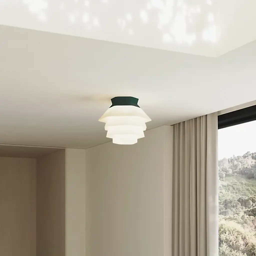 The Strata LED Flushmount from Gantri features an array of faceted shapes that combine to create a soft, inviting atmosphere. The Filippo Mambretti Design Studio drew upon rock formations across landscapes to create this stunning light fixture. Its shade is made to order and 3D-printed from a translucent, plant-based polymer at Gantri's digital factory in California. The shade gentles the glow, transmitting a warm wash of light below, with its folds and facets standing out as a dreamy centerpiece for the ceiling.