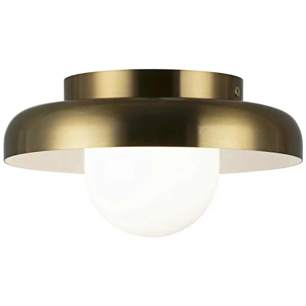 Elegance contained. Present an endearing pairing of shapes and plentiful light to your rooms with the Stu Flushmount from Lark. It pairs up with short ceilings as a low-profile construction. It takes a page from mid-century modern styling using elegant round shapes. The piece’s bowl shade impresses with generous curves. Globe-shaped lamping nestles inside the shade like a brilliant pearl. This globe mellows light downwards to evenly glaze one’s room.