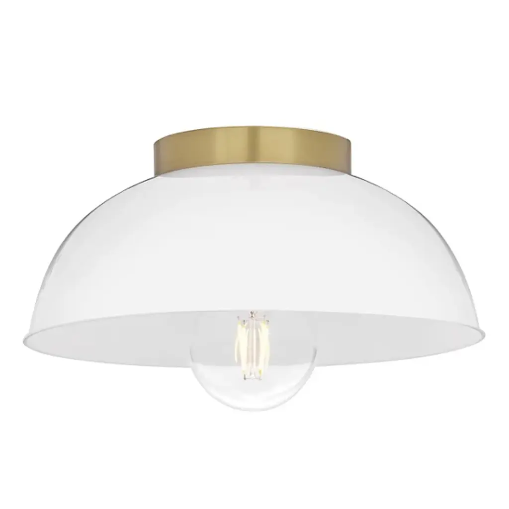 Heads up! Hit refresh on your ceiling’s status quo with Stu. This metal flush mount has a jaunty profile accentuated by fashion-forward finish options, each accessorized with a dashing Lacquered Brass canopy and the flexibility to customize with medium base bulbs. Our go-to’s? Play with G-style or classic bulb silhouettes.