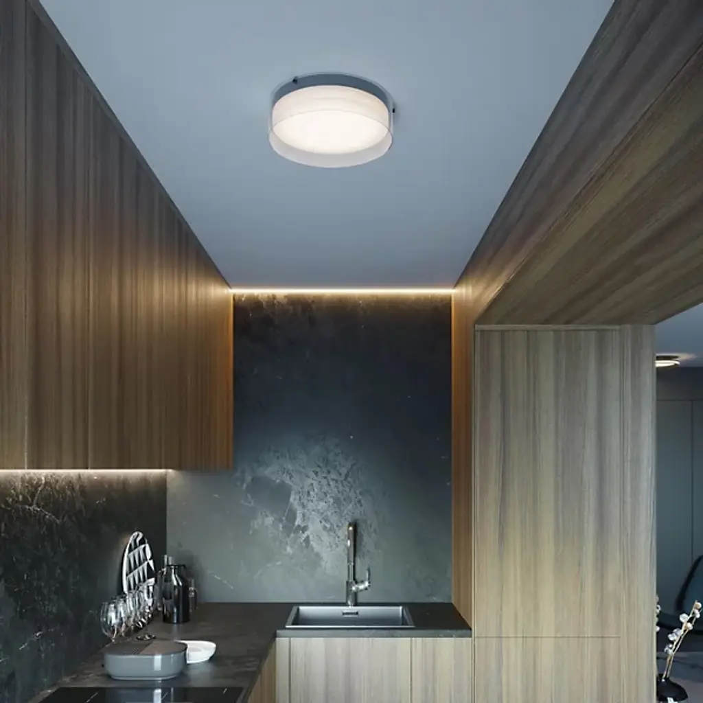 Illuminate your space with the Studio LED Ceiling Flushmount from AFX. Boasting a unique drum fixture shape, this modern yet transitional light fixture adds a feeling of sophistication to any room. Crafted with a blend of high-quality steel and acrylic, it is durable and sturdy. Not only does it provide efficient integrated LED lighting, but it is also dimmable, allowing you to create the perfect mood. Suitable for damp locations.