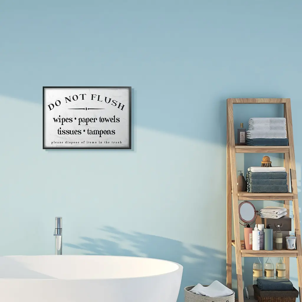 Stupell Don't Flush Disposable Garbage Items Bathroom Sign Framed Wall Art - White - 16 X 20 - Black