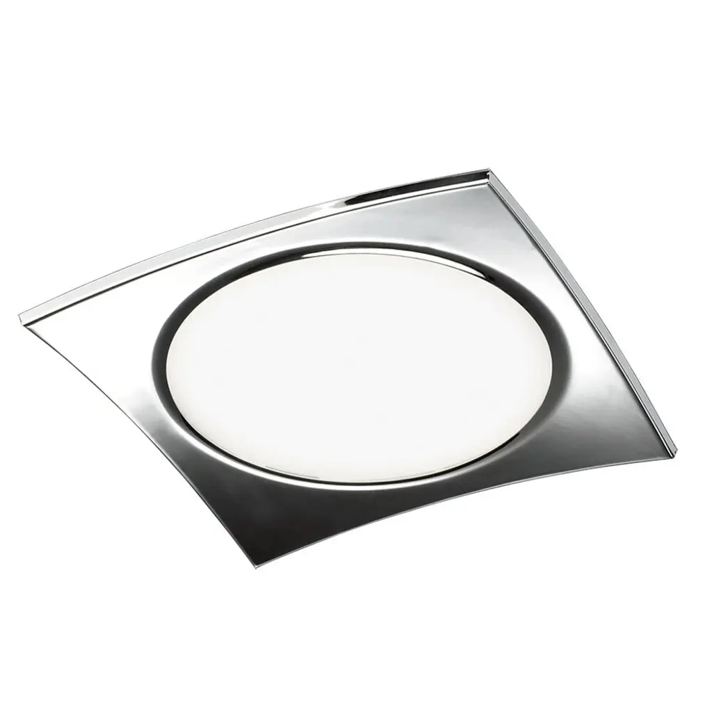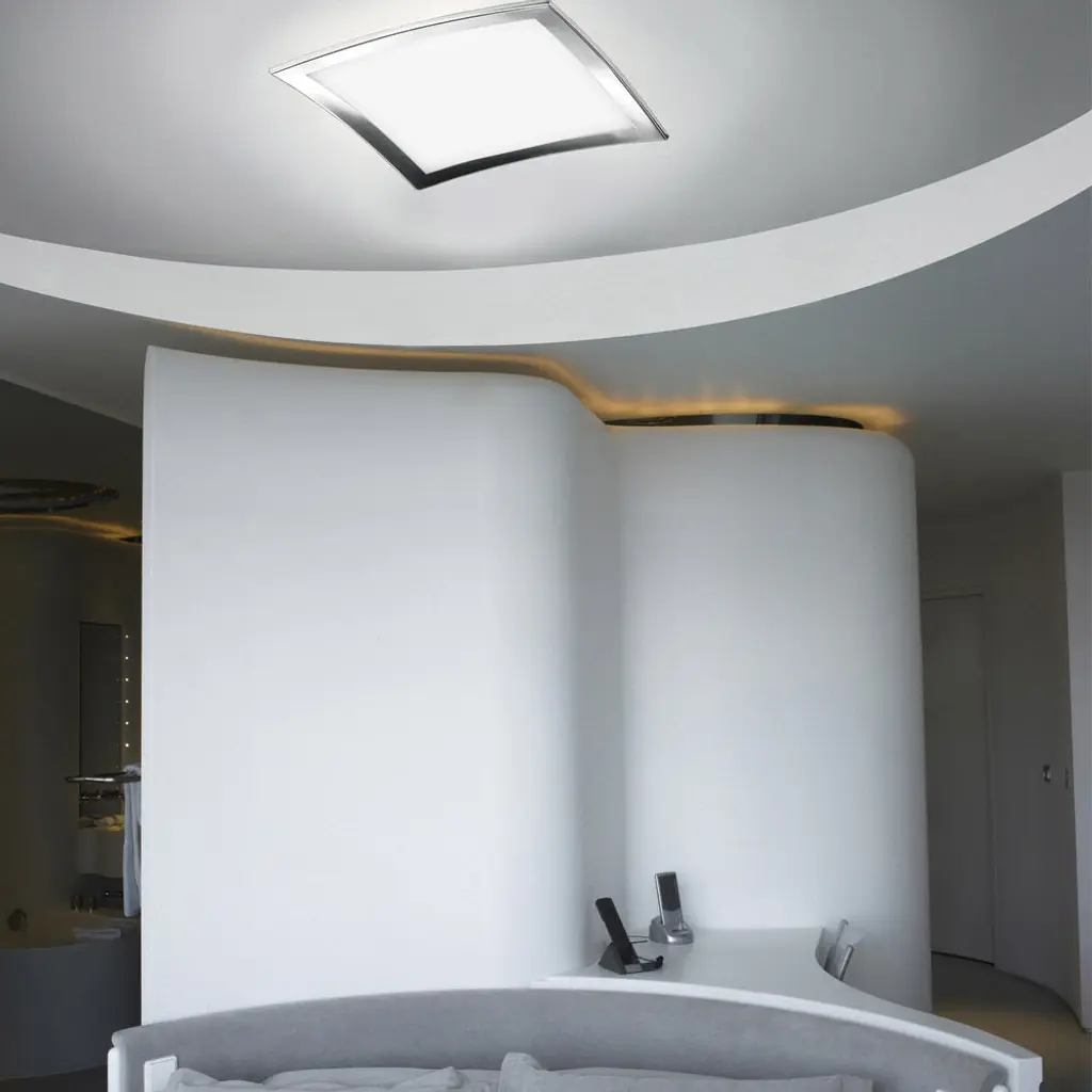 JESCO Large Ceiling MountSUI - Series 609 in Chrome. The SUI design features a beautiful curvilinear frame in chrome with a dipped frosted glass center. Energy efficient compact fluorescent lamps provide a choice of warm or cool white.Energy Efficient Ceiling Mount. Bulb Base: (4) Fluorescent 2G11 Twin Tube 4-Pin. c-ETL-us. Hardwire. Bulb is not included.