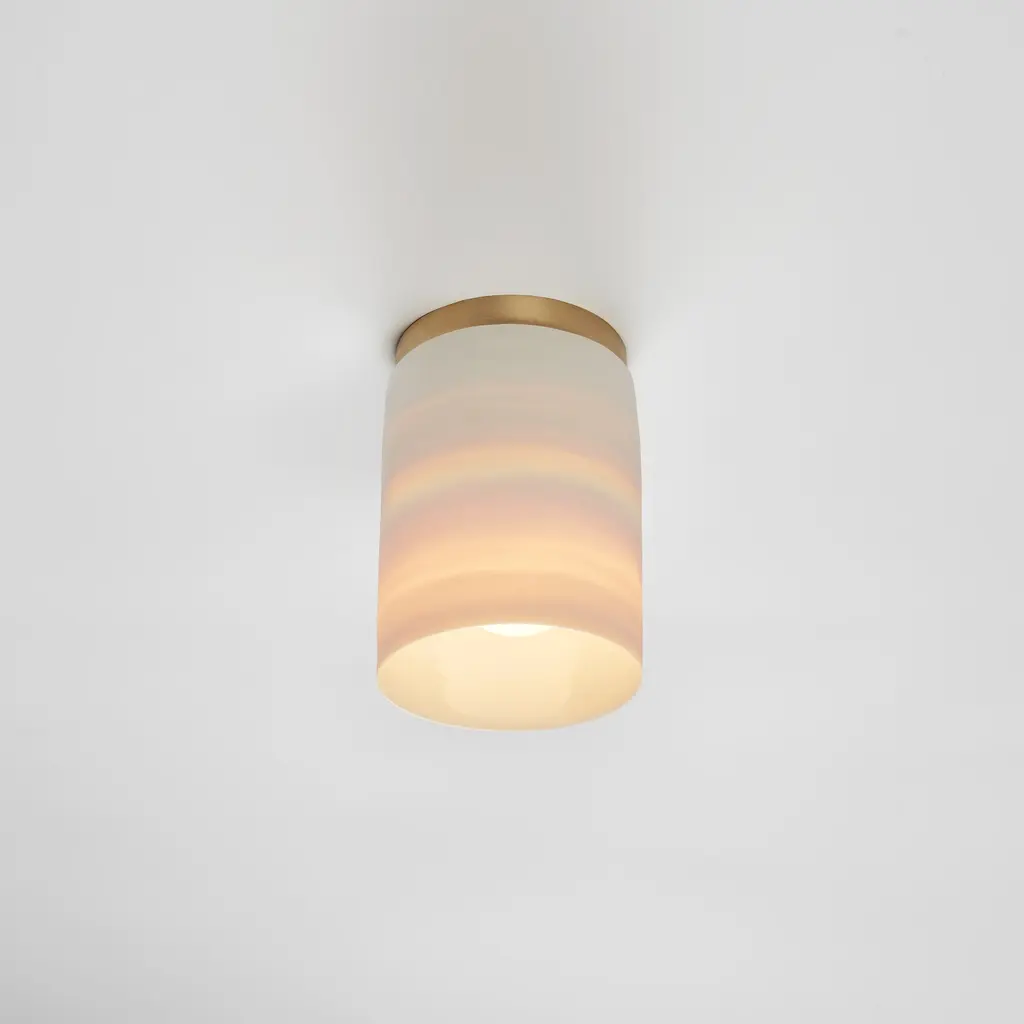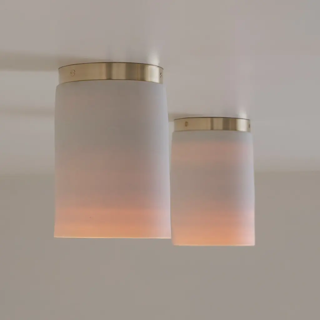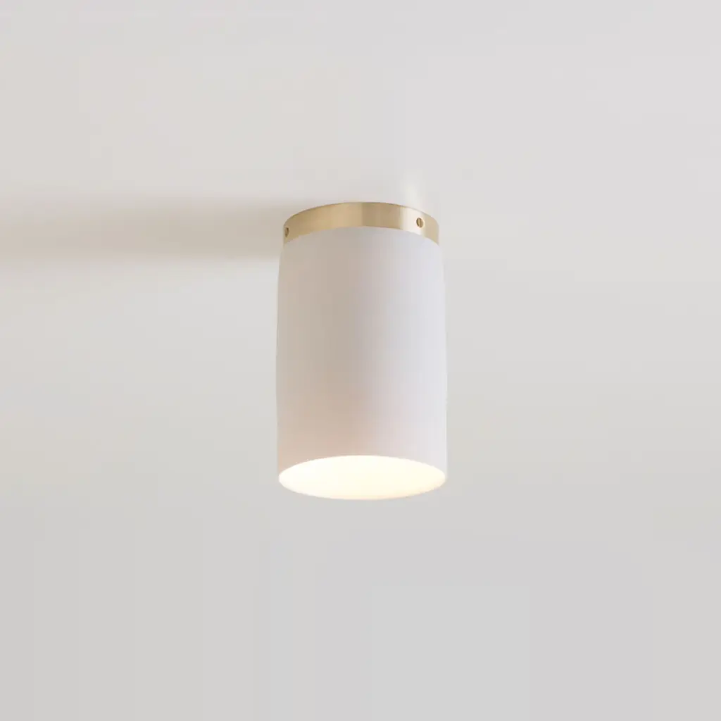 Invite retro charm into your space with the Surface Flushmount from Roll & Hill. Nash Martinez's design combines function and superior craftsmanship, featuring a brass ceiling mount, collar, and cylindrical ceramic shade for elegant continuity. Enjoy both a radiant ambient glow and focused task lighting. Highlights