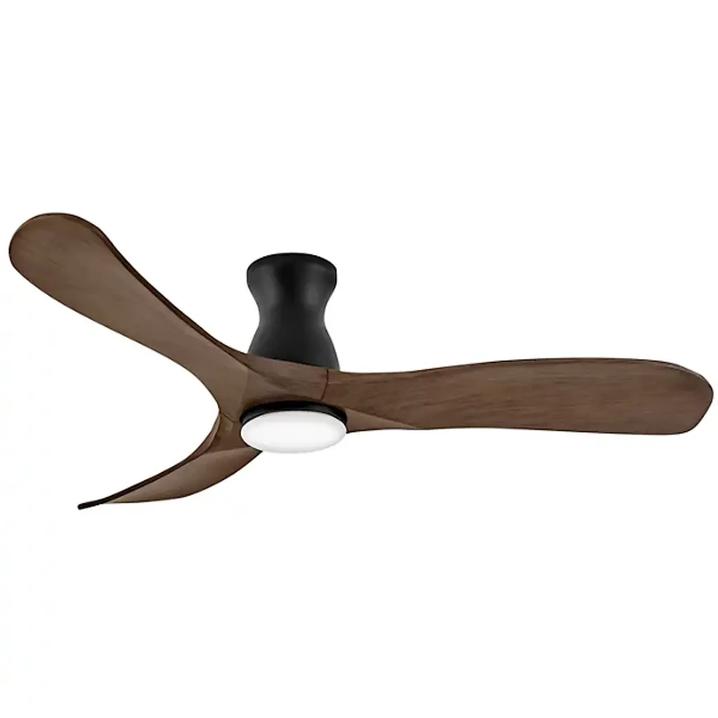 The Swell Flush Illuminated LED Ceiling Fan from Hinkley is crafted from steel. It features wood blades that are elegantly contoured. The etched opal shade adds sophistication and provides brilliant lighting courtesy of an integrated LED. With 3 reversible fan blades, Swell offers versatile airflow. Powered by a DC motor, it promises lasting performance and has 6 fan speeds in both forward and reverse directions. The included wall/handheld combo control allows you to adjust settings effortlessly. The fan's reverse switch on the control adds convenience.