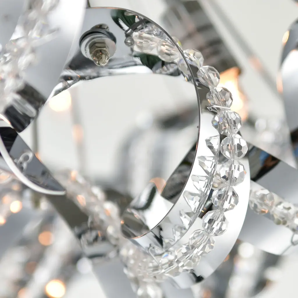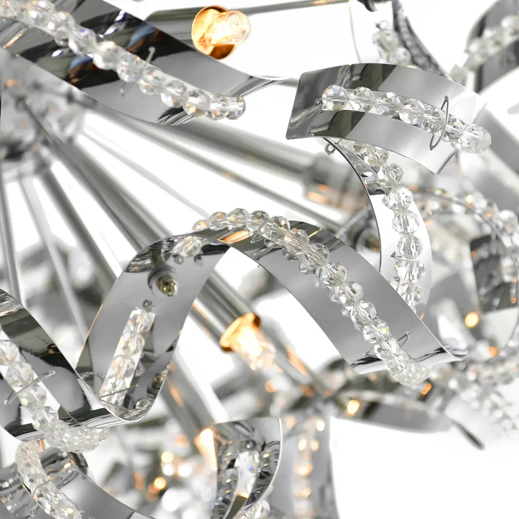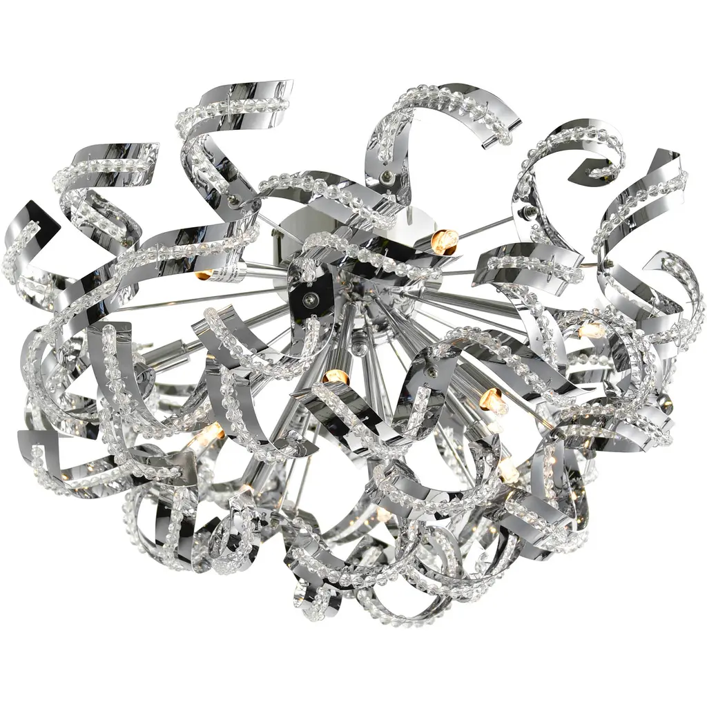 This glam 13 light chrome flush mount ceiling fixture features a sleek tiered design, adding depth and sophistication to any room. Ideal for kitchens, dining rooms, or bedrooms, it delivers bright, even lighting while enhancing contemporary and transitional decor. Compatible with dimmable LED bulbs (not included), it lets you adjust the light to fit any setting. Part of the Swivel Collection, this fixture combines a polished chrome finish with timeless style for a refined look.