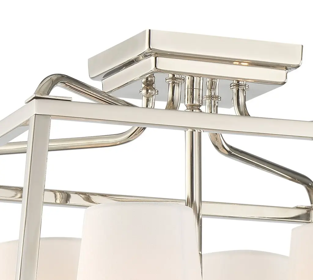 Crafted of steel with a polished nickel finish and white silk shades, this elegant flush mount is ideal for illuminating any space with a warm, inviting glow. Hardwired.