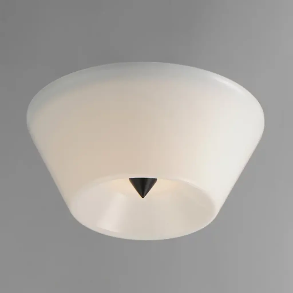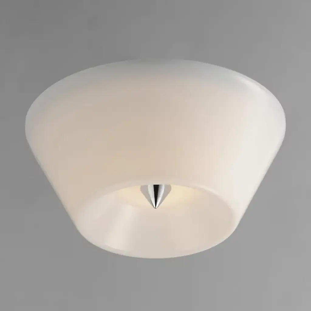 The Tack LED Flush Mount from Maxim Lighting highlights a sleek, cone-shaped design with a tapered glass shade that adds elegance to any space. It is complemented by a conical finial, enhancing the fixture's refined aesthetic. The coordinated finishes between the shade and finial create a cohesive look, making it a stylish addition to modern interiors. Combining functionality with sophisticated design, this fixture offers efficient lighting and a touch of contemporary flair to your decor.
