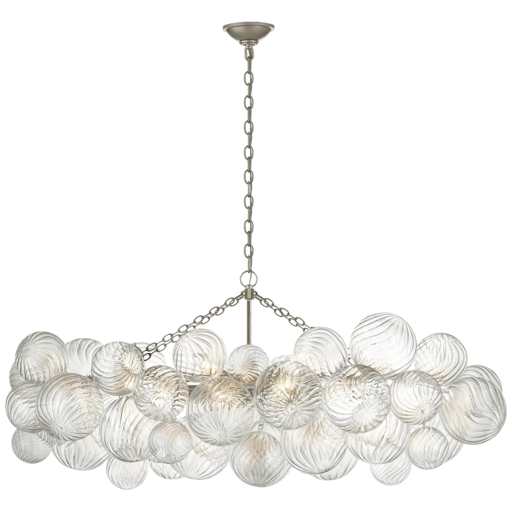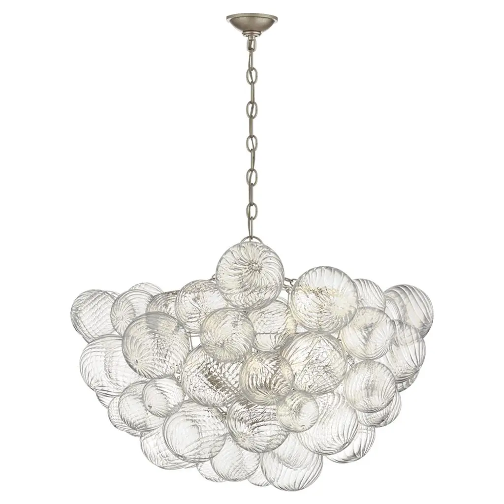 Artisanal glass elevates the Talia series by Julie Neill for a new take on the simple glass globe light fixture. Light shimmers through multiple swirled glass orbs attached to metal baskets, creating a whimsical flourish. Available in a range of sizes and configurations, the Talia series adds a dynamic mix of sparkling glass, rounded forms, and bright metals to any interior. Choose a chandelier for entryways and dining areas, flush-mounts or wall sconces for living spaces or bedrooms, and add a playful, feminine touch to any space.