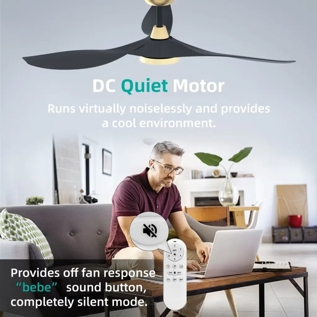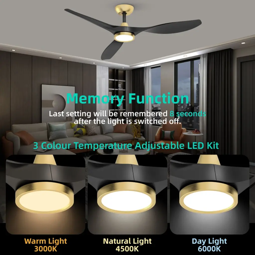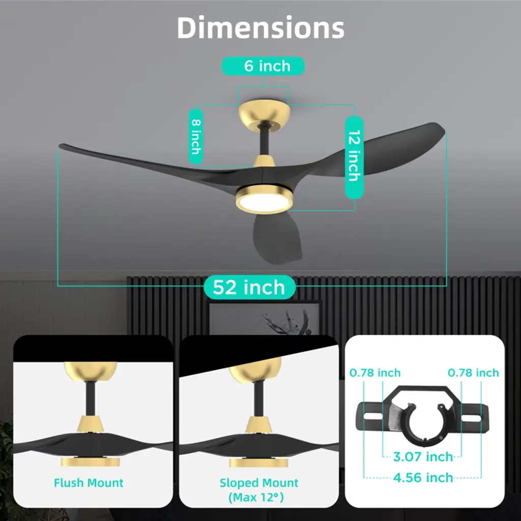 Our ceiling fans with lights and remote is equipped with a high quality DC motor which is more reliable, more efficient and quieter.This black ceiling fan with light comes with LED lighting offering 3 color temperature choices. You can easily switch between different color temperatures using the remote control.The multi-functional ceiling fan with lights remote control allows you to freely control the 6 speeds of the fan, set 1/4/8 hour timer. You can achieve all functions via the remote control. Elderly and kids at home can also use it with ease