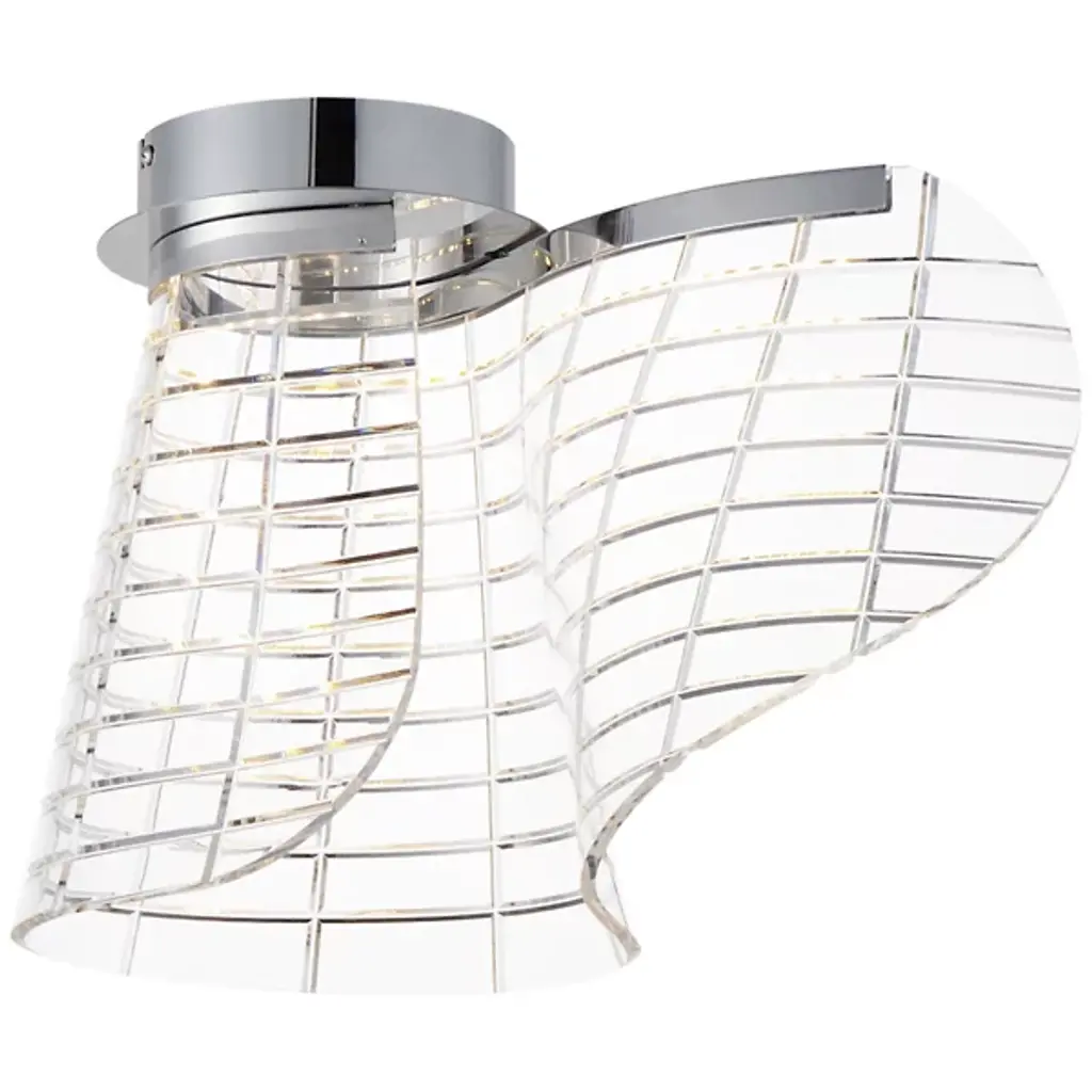Inspired by patterned fabrics of the Scottish Highlands, the Tartan collection features a waving grid-like design etched deep into the transparent acrylic body. Hand-formed into a curling structure, the material gives the impression of billowing in the breeze. Color temperature selection at the canopy allows you to choose from Warm, Neutral, and Cool White colored LED lighting.