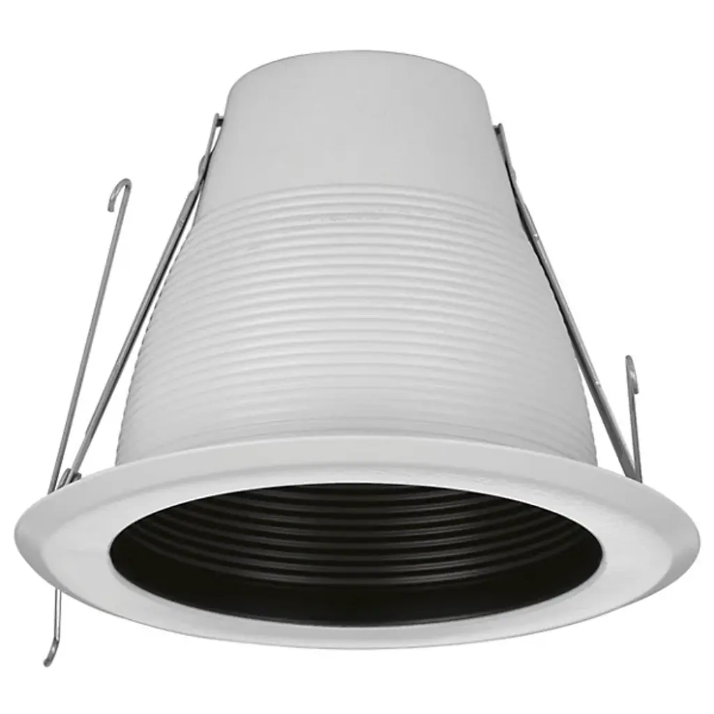 The Teagan 5" Recessed Step Baffle Trim from Huxe helps present an easy-going light with a clean, refined surface pattern. This metal piece slots securely in its housing with a durable feel. The trim adds an architectural accent to the ceiling as it sits flush with a clean geometric outline. A baffle pattern lets the outpouring of light mellow in stages, giving one a reduced glare experience and a smooth glow.