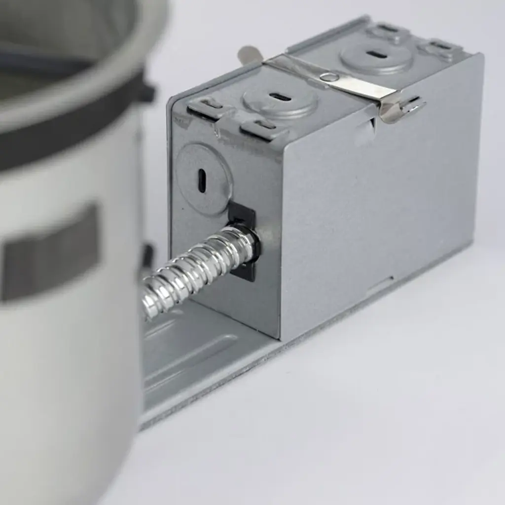 Huxe presents the Teagan 5" Remodel Incandescent Shallow Airtight IC/Non-IC Housing. Both IC and Non-IC rated, the socket mounts to trim for optimum performance and consistent lamp position and can use various Incandescent, CFL and LED lamps. Housing is suitable for residential or light commercial applications. It is designed to install with insulated and non-insulated ceilings as an air-tight code-compliant construction. The housing can be used with various trims and finishes to create different lighting effects or match any decor. The trims use friction springs to attach to the housing to provide a flush fit against the ceiling.