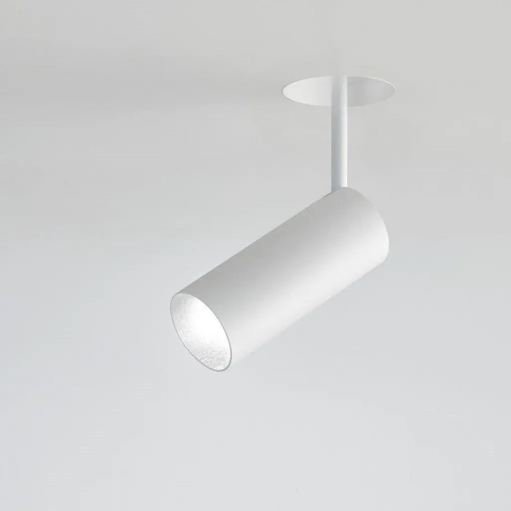 Trimless recessed directional light (both for installation in plasterboard as in hard ceiling). Visible deep-settube, flush with the ceiling, complete with spot light, axial adjustable from 0° to 90° - directional from 0° to350°. Dimensions: cut out 83mm (81mm for concrete ceiling) - outside diameter 80mm - built-in height 150mm -maximum height 230mm - tube Ø 55mm - tube height 157mm. Main power 230V AC 50Hz.Use: indoor (IP20) - Energy class A - (Phase DIM)