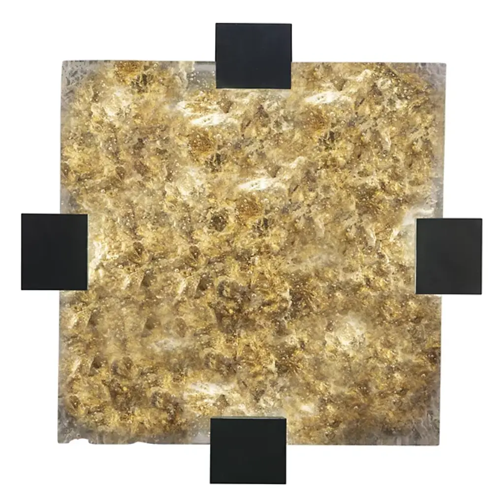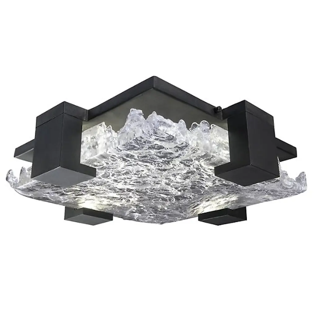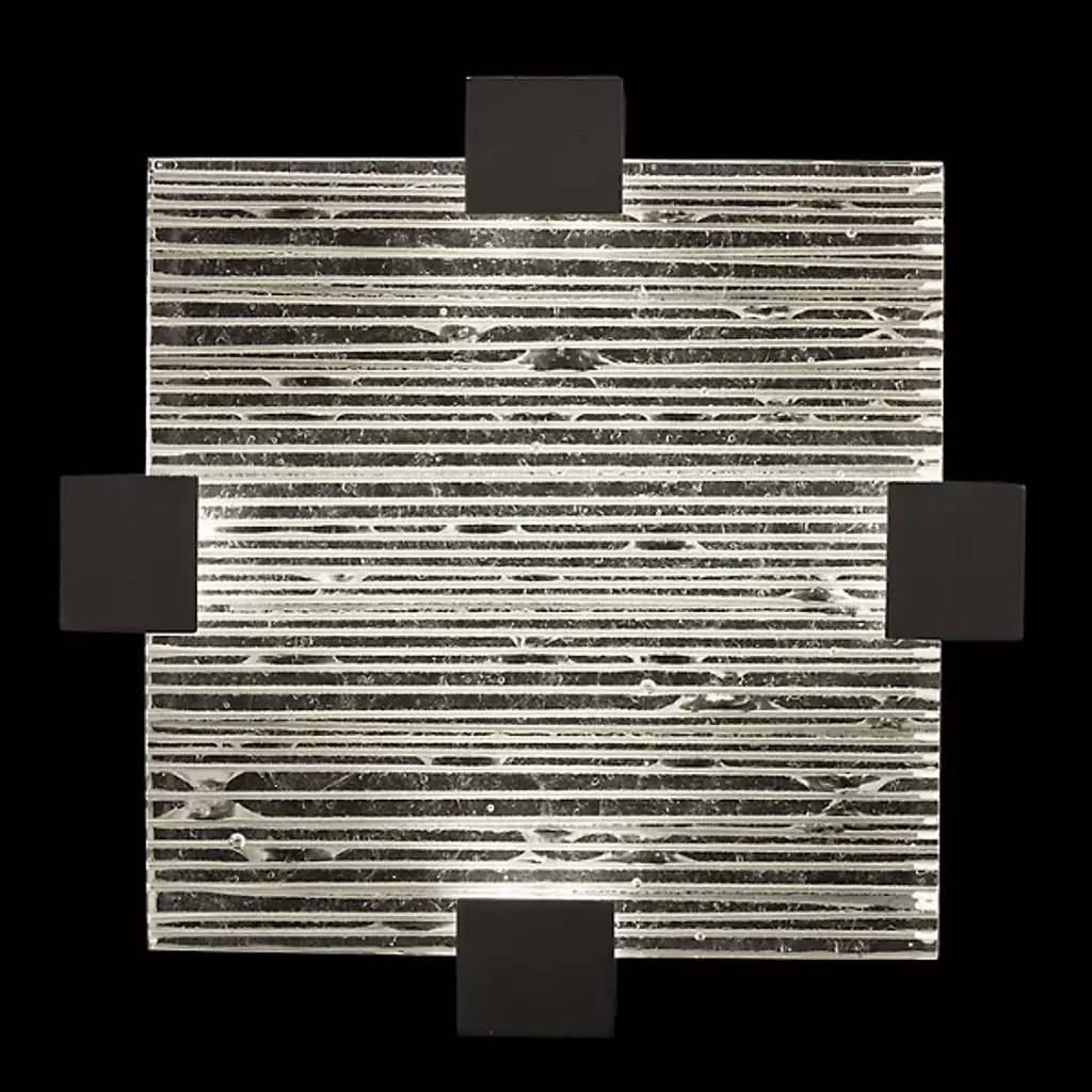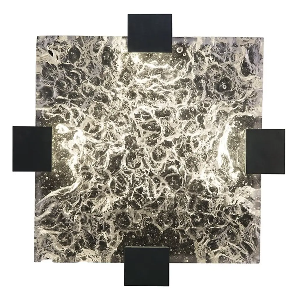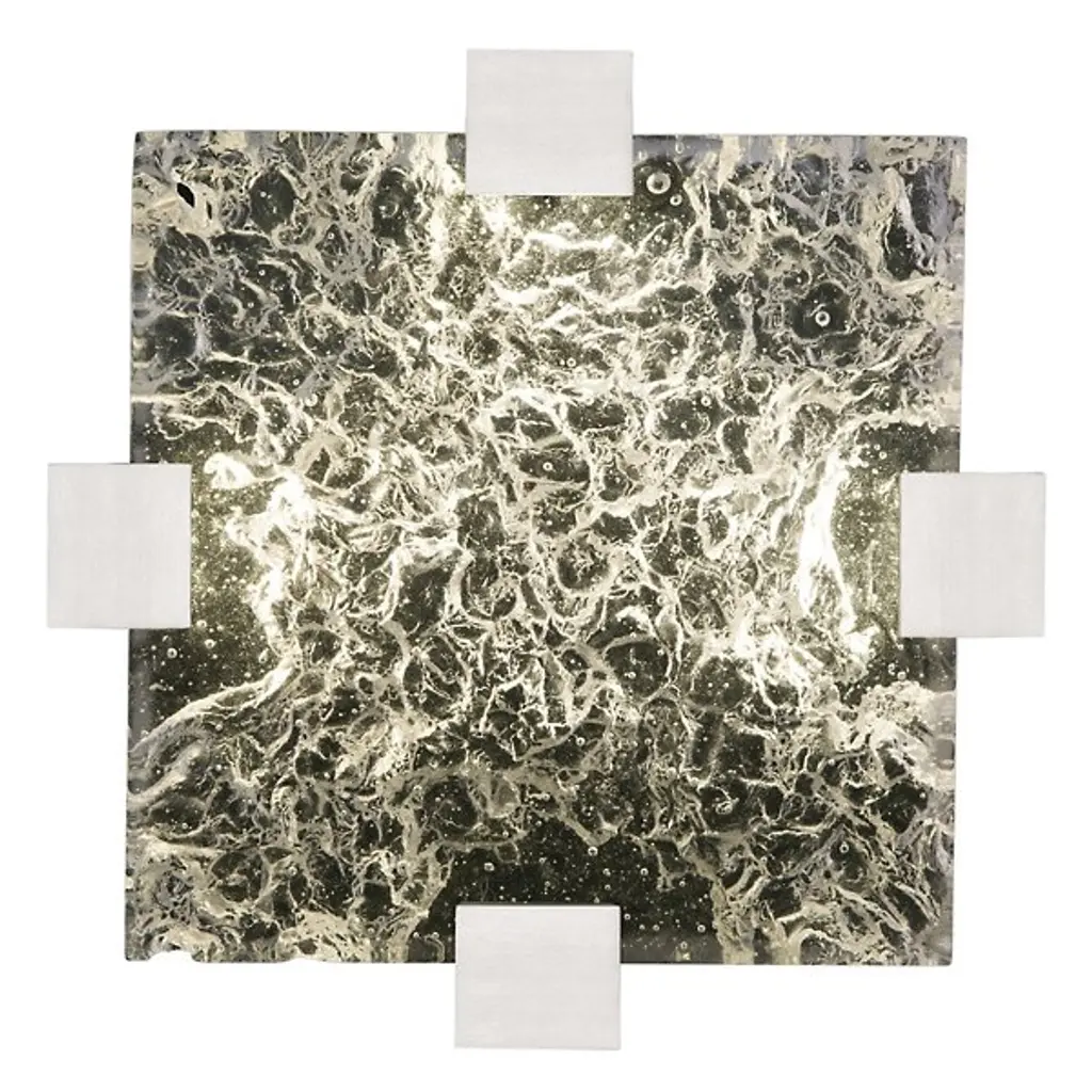 Add a restrained natural accent to your indoor spaces with the eye-catching lines of the Terra LED Flushmount from Fine Art Handcrafted Lighting. Starting with a square metal canopy, it sends down a bracket from each side to hold a similarly square late of cast glass set over LED lamping. The glass is left alone on its upper edge but is polished on its sides and base. This combination of textures offers a sculptural presence when the irregular glass is viewed from the side, growing warm and encompassing as it diffuses glare from the light below.