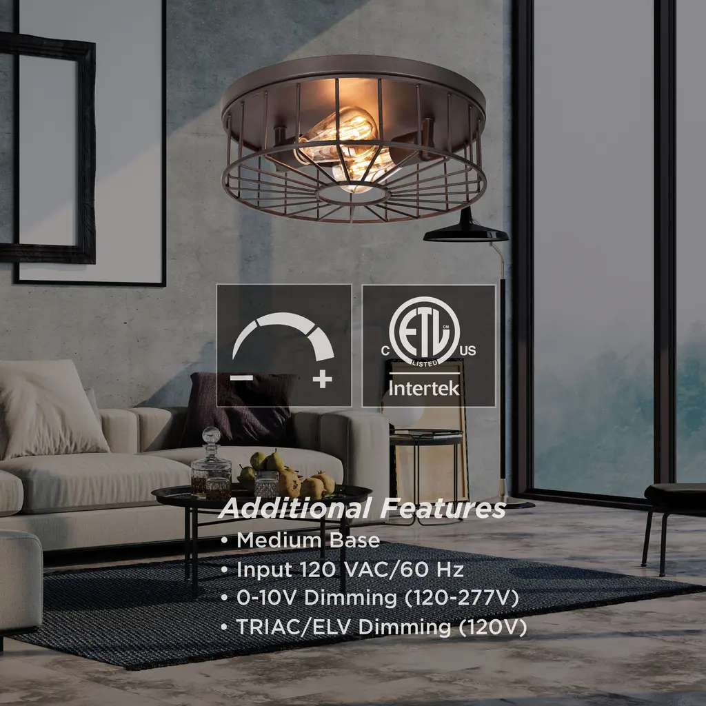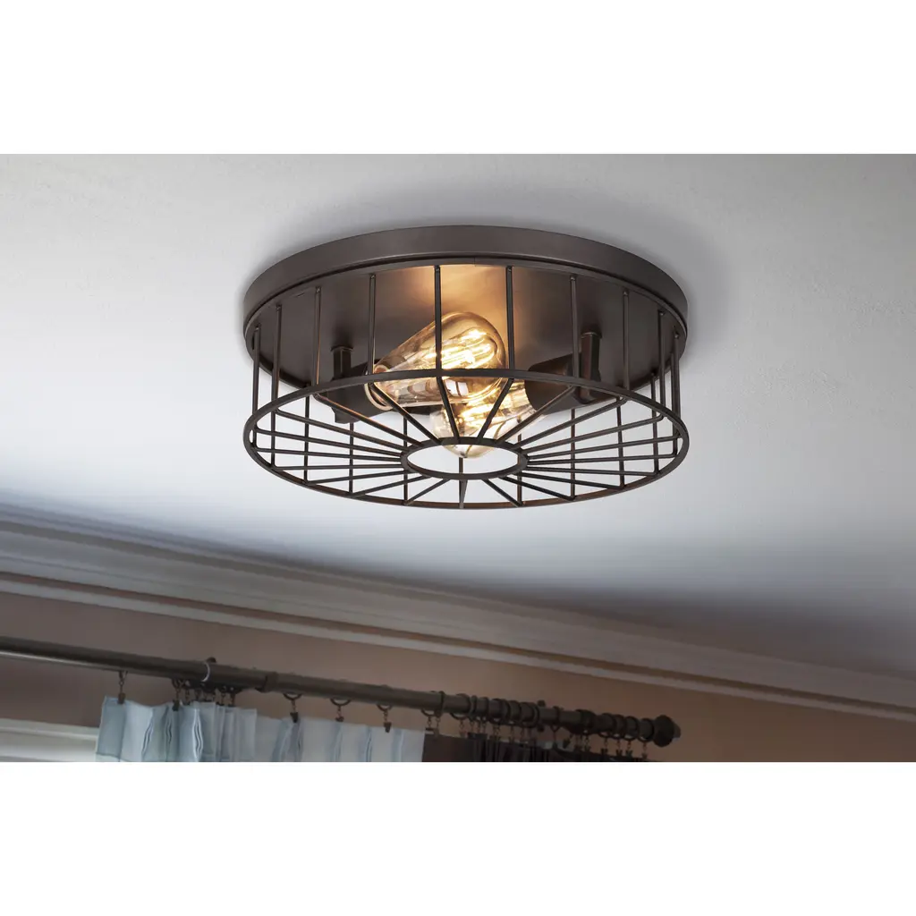 Theo 2 Light 14 Inch Black Flush Mount Ceiling Light