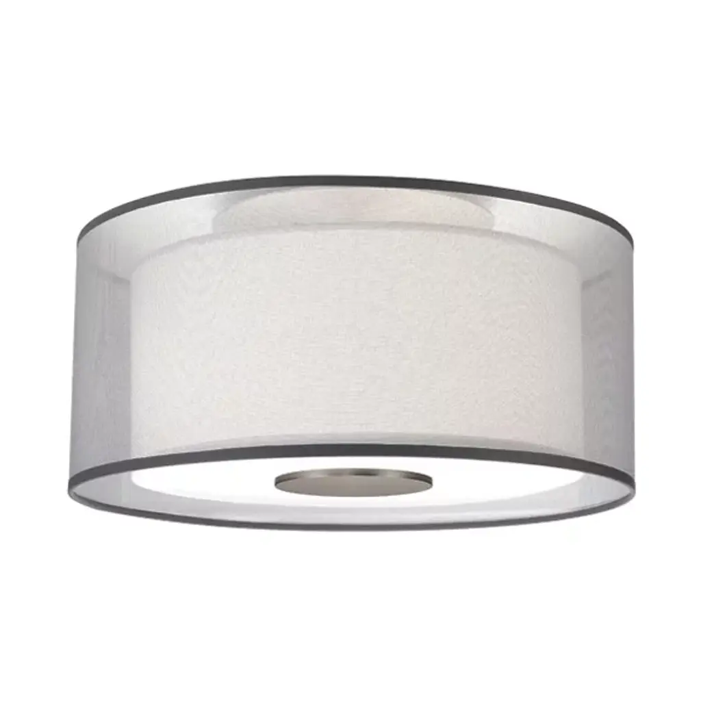 Short yet packed with style. The Theo Flushmount from Alora Mood gives low ceilinged rooms a proportional luminaire, brimming with easy-going illumination. The flushmount feels embedded in the room as it sits flush and low over the ceiling. This piece takes the time-tested drum shade and refines it for a transitional design that works across various home styles. The shade’s soft linen and hard steel contrast each other in an eye-catching graphic image. Bright light filters through the linen, softening its way towards one’s eyes for an atmospheric glow.