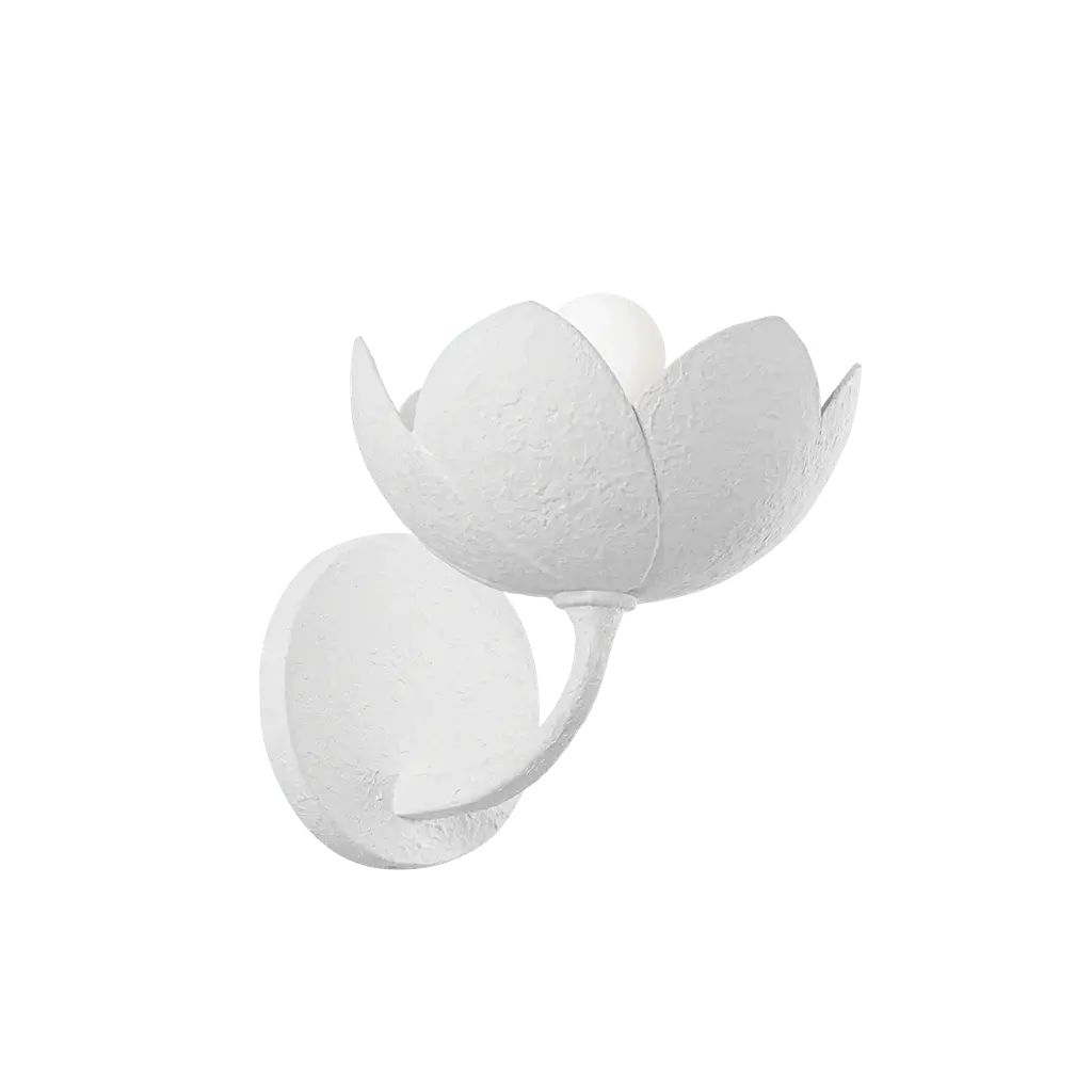 Layered petals wrapped in off-white linen create the floral shade of this stunning ceiling light. Its organic design is elevated with the rich warmth of an antique brass finish, offering a smooth, polished contrast to the lightly textured linen. This flush mount fixture offers statement appeal with a compact profileperfect for lower ceilings.