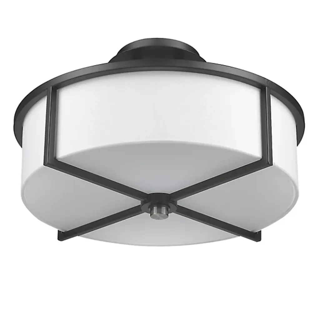 Accentuating your range of décor as a handsome transitional design. The Tim Flushmount from Alder & Ore finds a place from one room to the other with a clean silhouette and a helping of comfortable illumination. Ideal for rooms with low ceilings, the piece sits tight overhead with a short downrod and compact canopy. Framing the curves of the shade, a steel frame drops down with sleek angles to create a dapper silhouette. The shade’s clean, handcrafted fabric color serves as an elegant fabric for the metal. The shade complements a glass diffuser at the base to mellow brilliant for a glare-free experience. A flip of the switch presents your room with an aura of comfortable warmth.