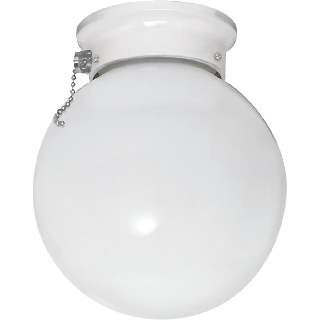 The Tomkin one light flush mount fixture in white is an ENERGY STAR½ qualified lighting fixture that uses LED bulbs to save you both time and money. Tomkin ceiling flush mount lighting fixtures by are ideal for use in foyers, hallways, bedrooms, utility work areas and stairways. The Brushed Nickel, Heirloom Bronze, or White finishes and Smooth White globe shade will complement a wide array of decor. Also available in a pull-chain version. The Tomkin ceiling fixture will help you achieve your desired functional needs with no compromise on quality. Both incandescent lamping and ENERGY STAR-qualified LED lamping are available.