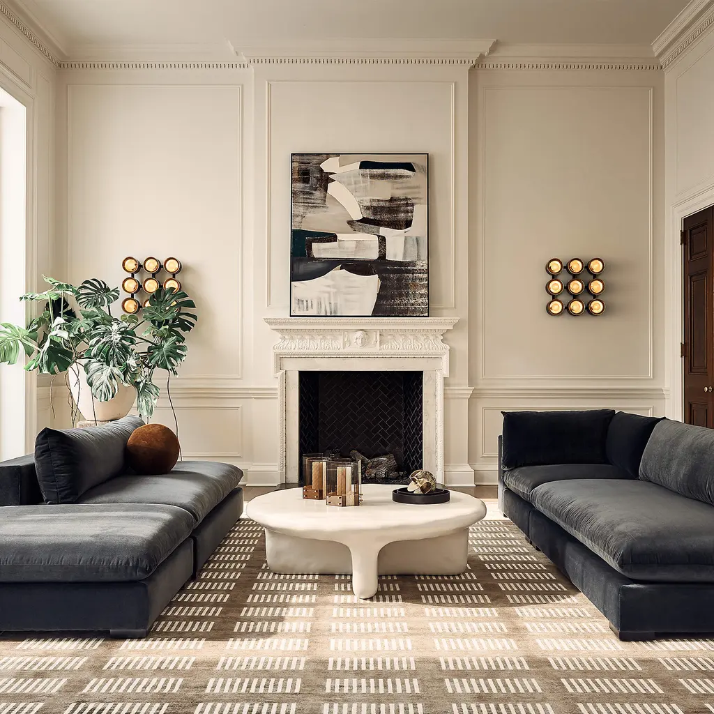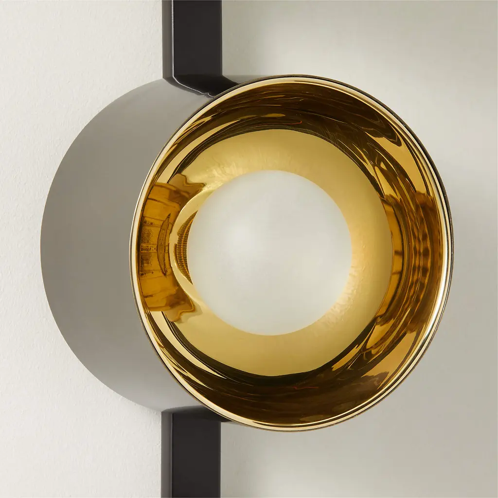Brass flush mount from Melbourne-based VUUE offers a refined take on vanity lighting. The blackened brass canister shades cast a soft light downward. The interior is unlacquered, offering a living finish within the shades that will develop the patina of a vintage find. CB2 exclusive. Due to the nature of the material, brass patina will vary in color and darken over time.