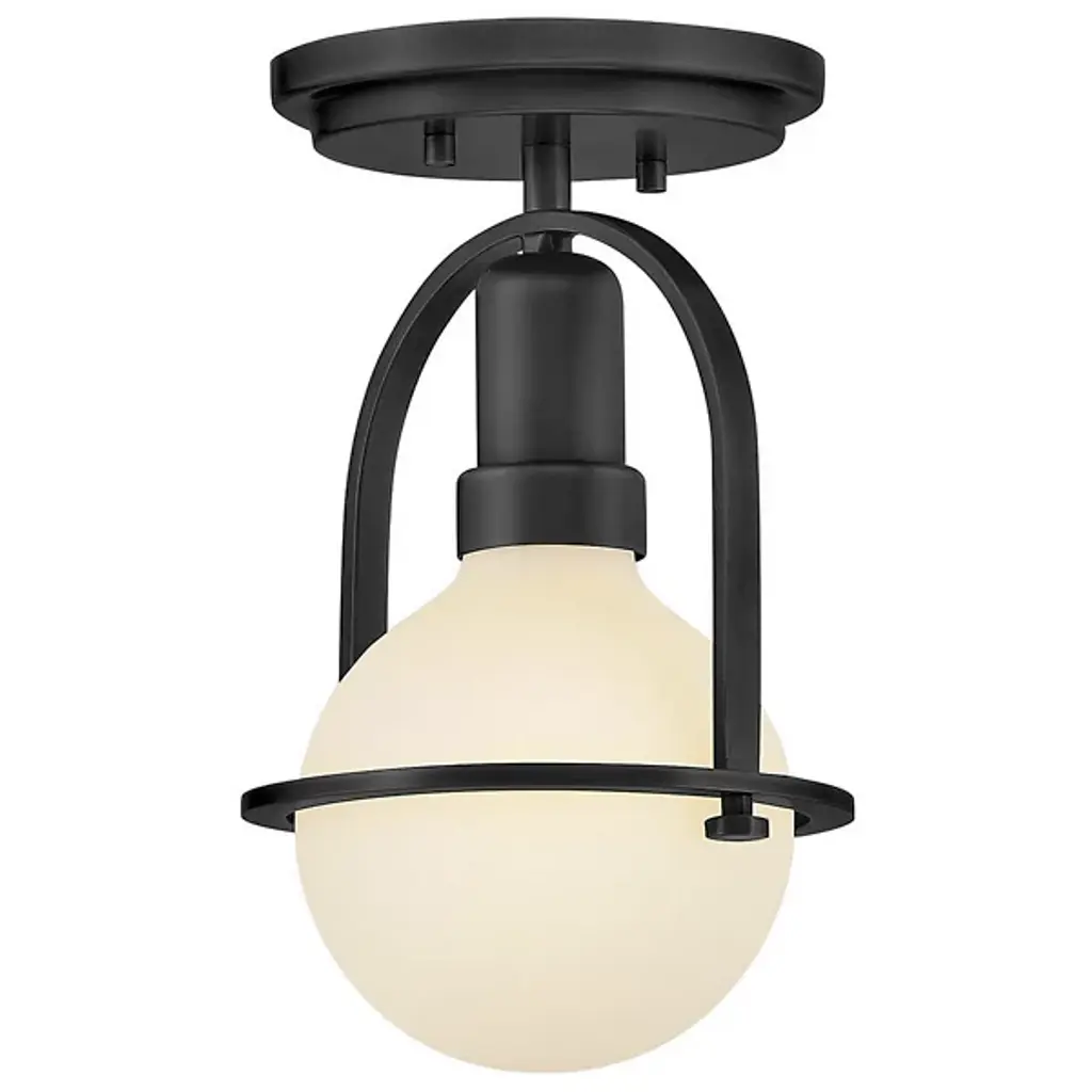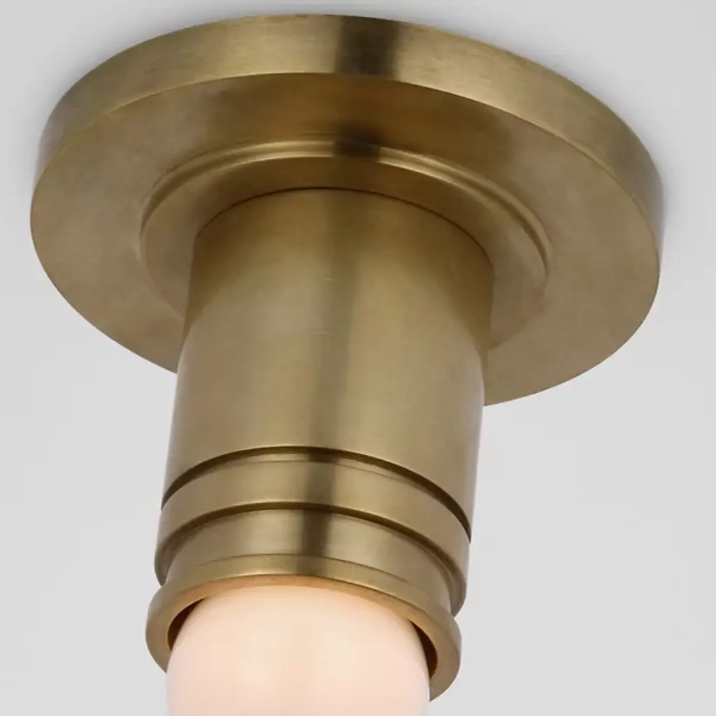 Put a tasteful cap on ceiling spaces with the elegant and inspired lines of the Top Hat Mini Monopoint Flushmount from Visual Comfort. A Thomas O'Brien design descending from a stepped circle canopy, its grooved, cylindrical metal body offers an inspired blend of clean contemporary style paired with eloquent ring accents. A dome shade of translucent glass descends around damp-listed lamping, transforming bright glare into a pleasing, even ambiance.