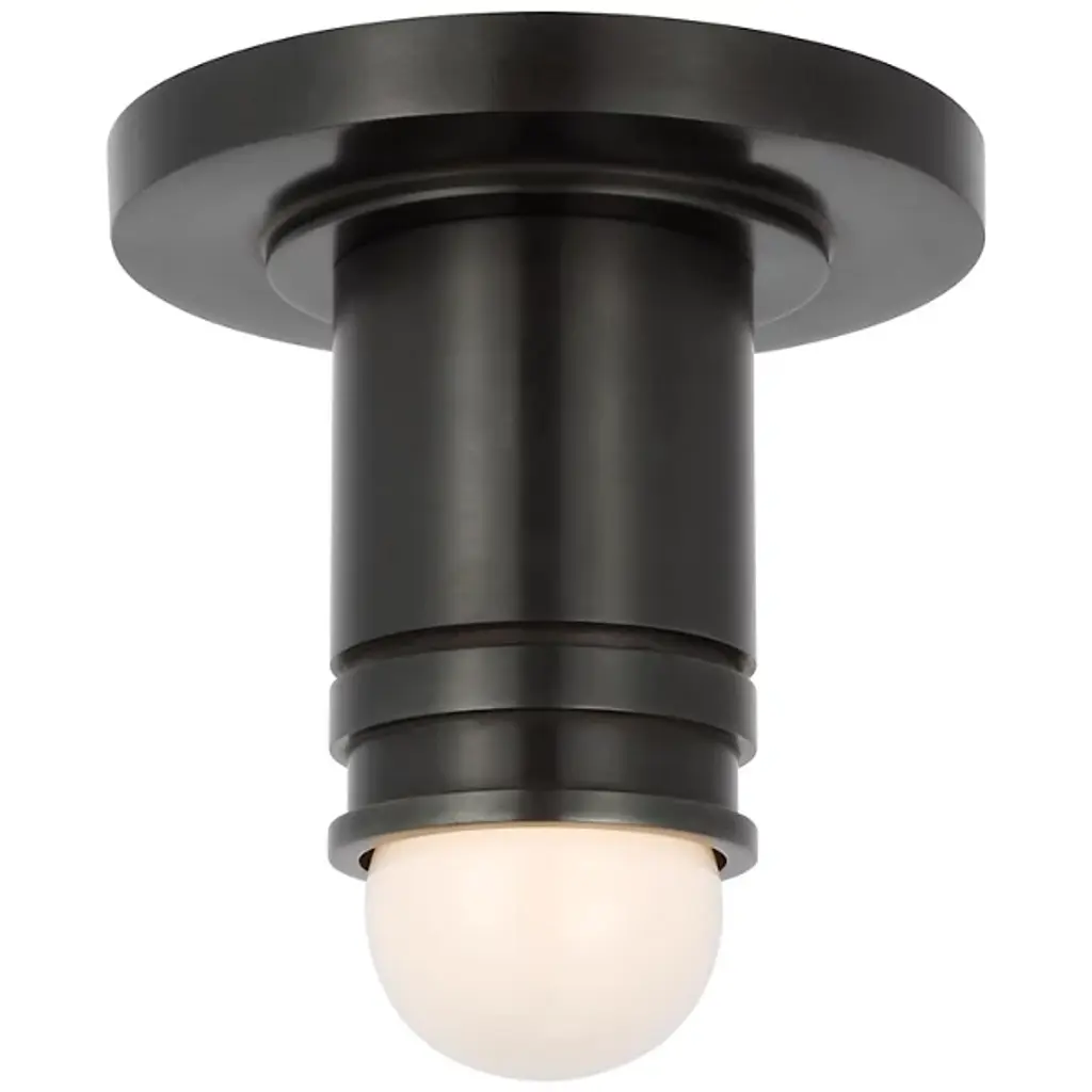 Put a tasteful cap on ceiling spaces with the elegant and inspired lines of the Top Hat Mini Monopoint Flushmount from Visual Comfort. A Thomas O'Brien design descending from a stepped circle canopy, its grooved, cylindrical metal body offers an inspired blend of clean contemporary style paired with eloquent ring accents. A dome shade of translucent glass descends around damp-listed lamping, transforming bright glare into a pleasing, even ambiance.
