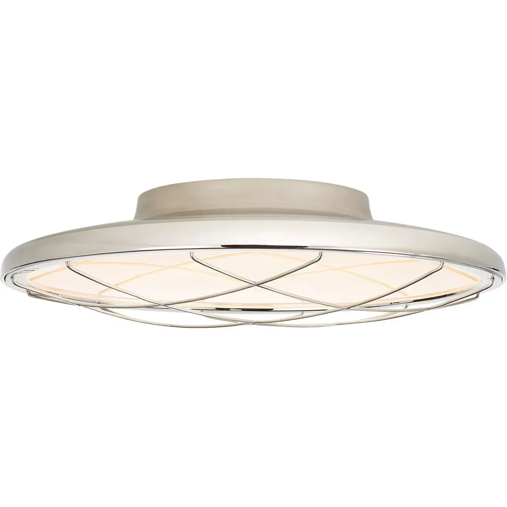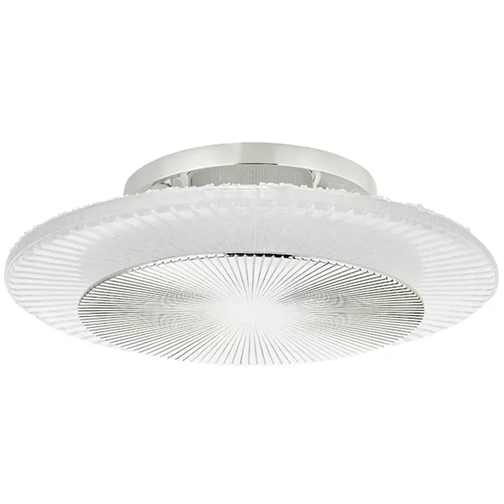 Raise the radiance of your home layout with the Topaz LED Flushmount by Corbett Lighting. Fine steel takes on a disc-like formation boasting spindle-style detailing that draws the eye. The circumference of this light fixture is lined with beautiful striated glass that allows brilliant light to emanate from an integrated LED. The LED light disperses evenly past the starry circular shapes. This light reaches the eyes as a soft glow that is great for tight or open spaces.