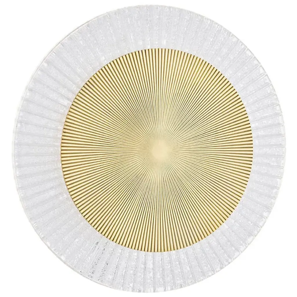 Raise the radiance of your home layout with the Topaz LED Flushmount by Corbett Lighting. Fine steel takes on a disc-like formation boasting spindle-style detailing that draws the eye. The circumference of this light fixture is lined with beautiful striated glass that allows brilliant light to emanate from an integrated LED. The LED light disperses evenly past the starry circular shapes. This light reaches the eyes as a soft glow that is great for tight or open spaces.