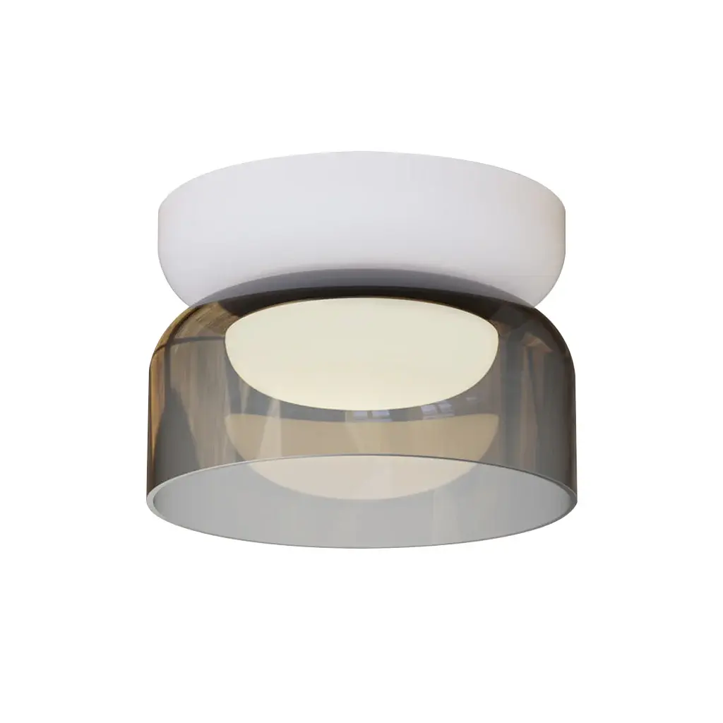 The lighting fixture features a hand-blown opal glass shade that emits a soft, diffused glow. It includes a dim-to-warm function, adjusting the color temperature from 2,700K to 2,200K. Fully dimmable, it is suitable for various interior spaces.