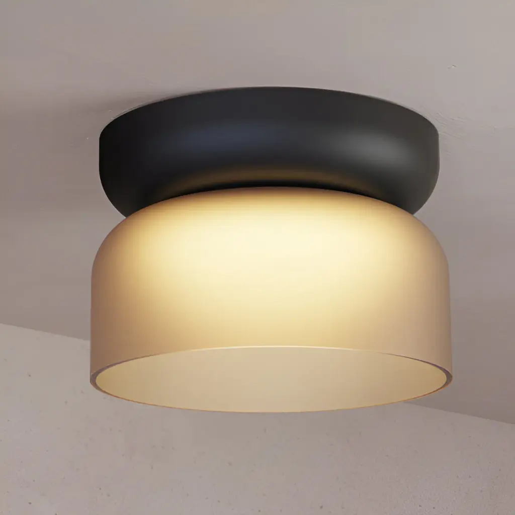 The lighting fixture features a hand-blown opal glass shade that emits a soft, diffused glow. It includes a dim-to-warm function, adjusting the color temperature from 2,700K to 2,200K. Fully dimmable, it is suitable for various interior spaces.