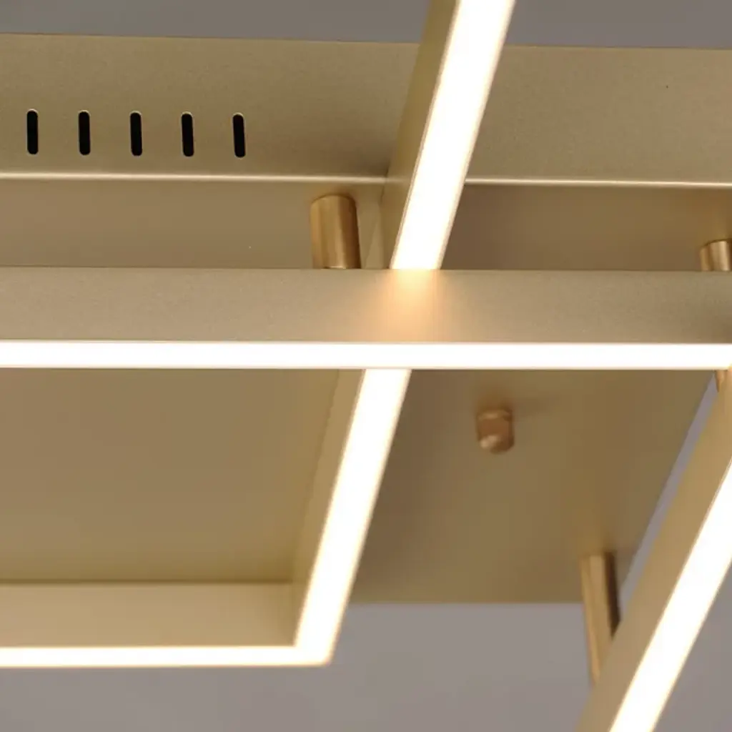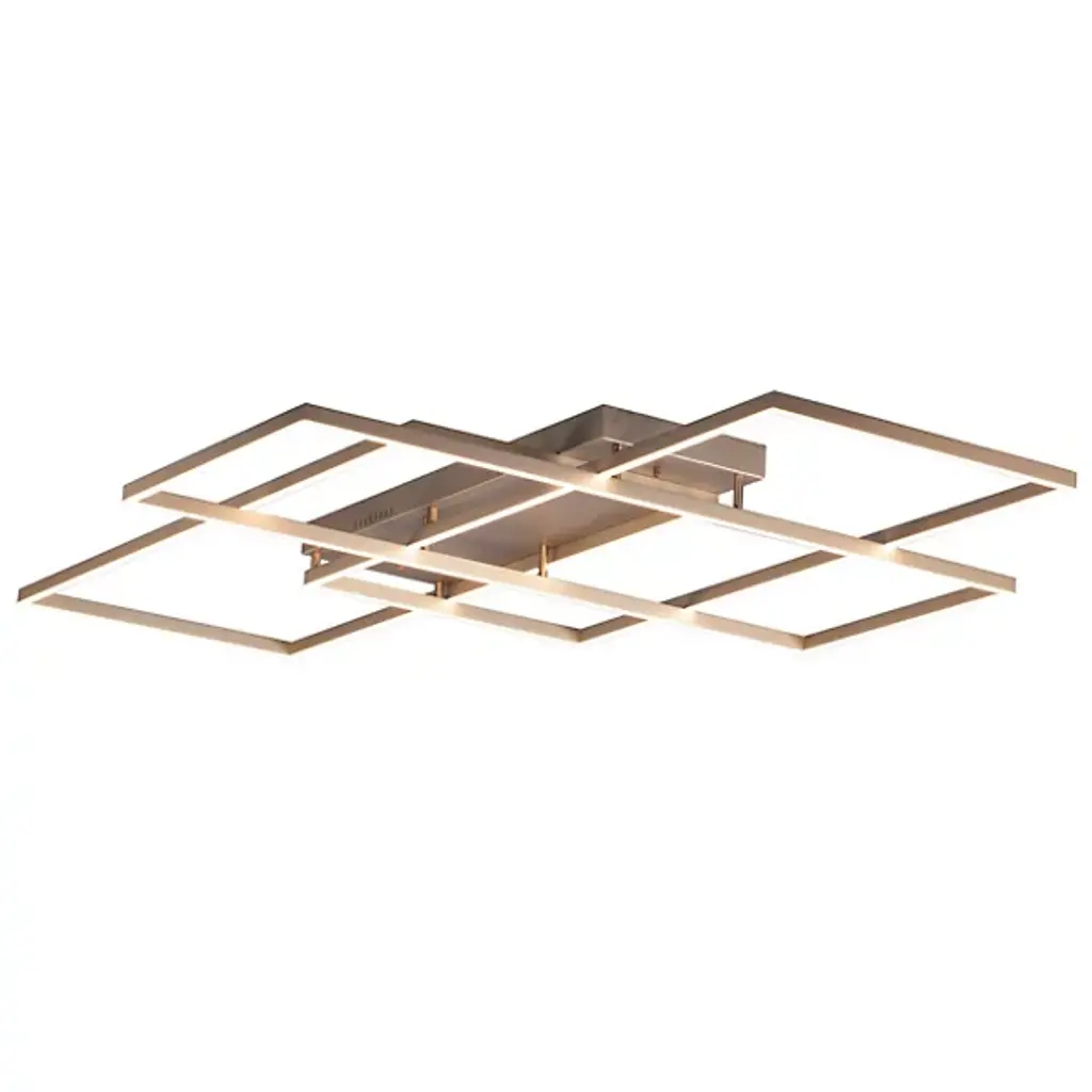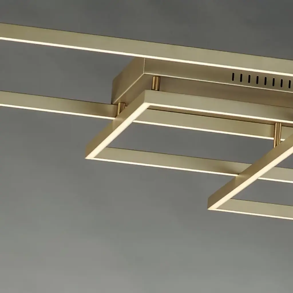 Add a touch of the geometric to your ceilings with the Traverse LED Flushmount from ET2 Lighting. Starting from a long rectangular canopy, it uses short, solid stems to anchor interlocking rectangular frames that overlap and echo the mounting block. Integrated LED lamping tucked behind acrylic diffusers lines the lower edges of each frame, creating an interwoven mosaic of illumination from above. Damp-listed and durable, the Traverse is set for years of solid service.