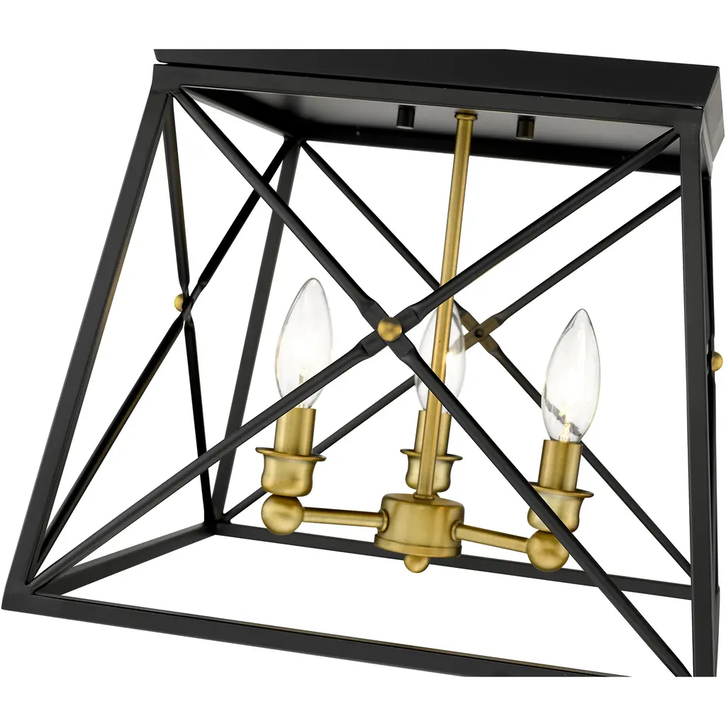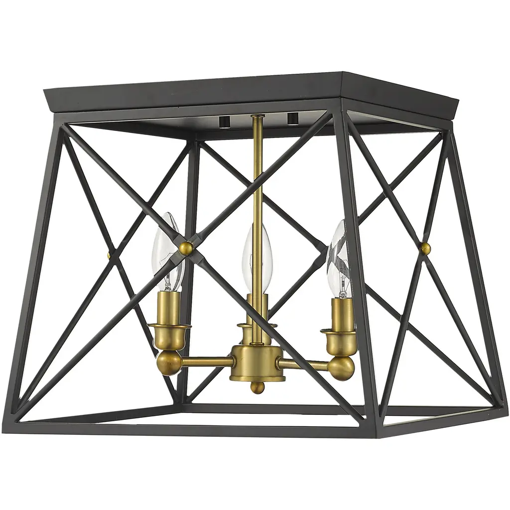 Trestle 3 Light 14 Inch Matte Black And Olde Brass Flush Mount Ceiling Light