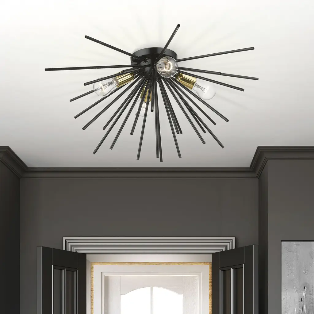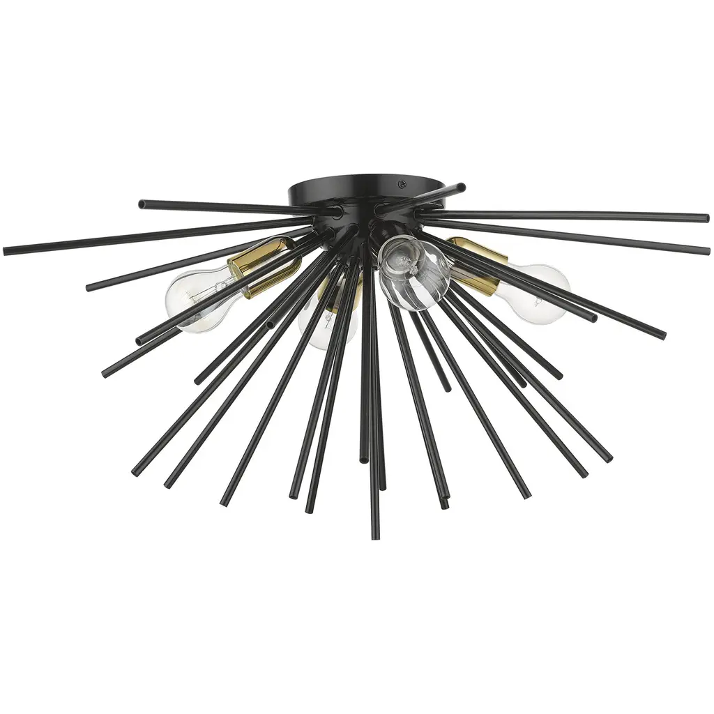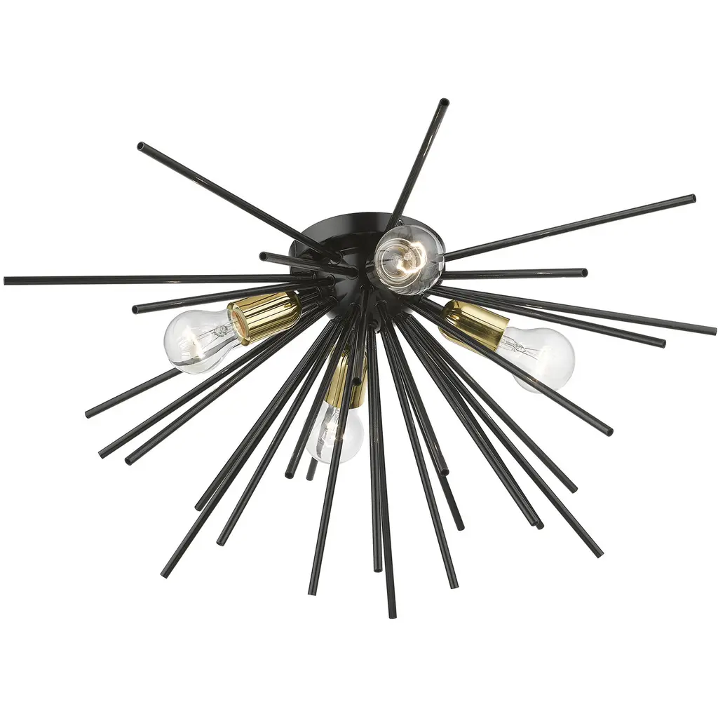 4 Light Shiny Black with Polished Brass Accents Large Flush Mount
