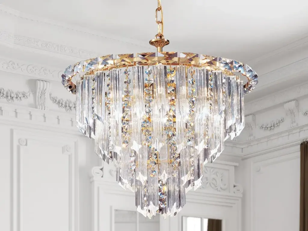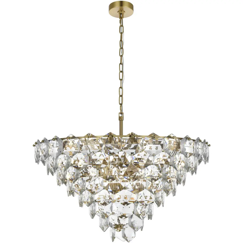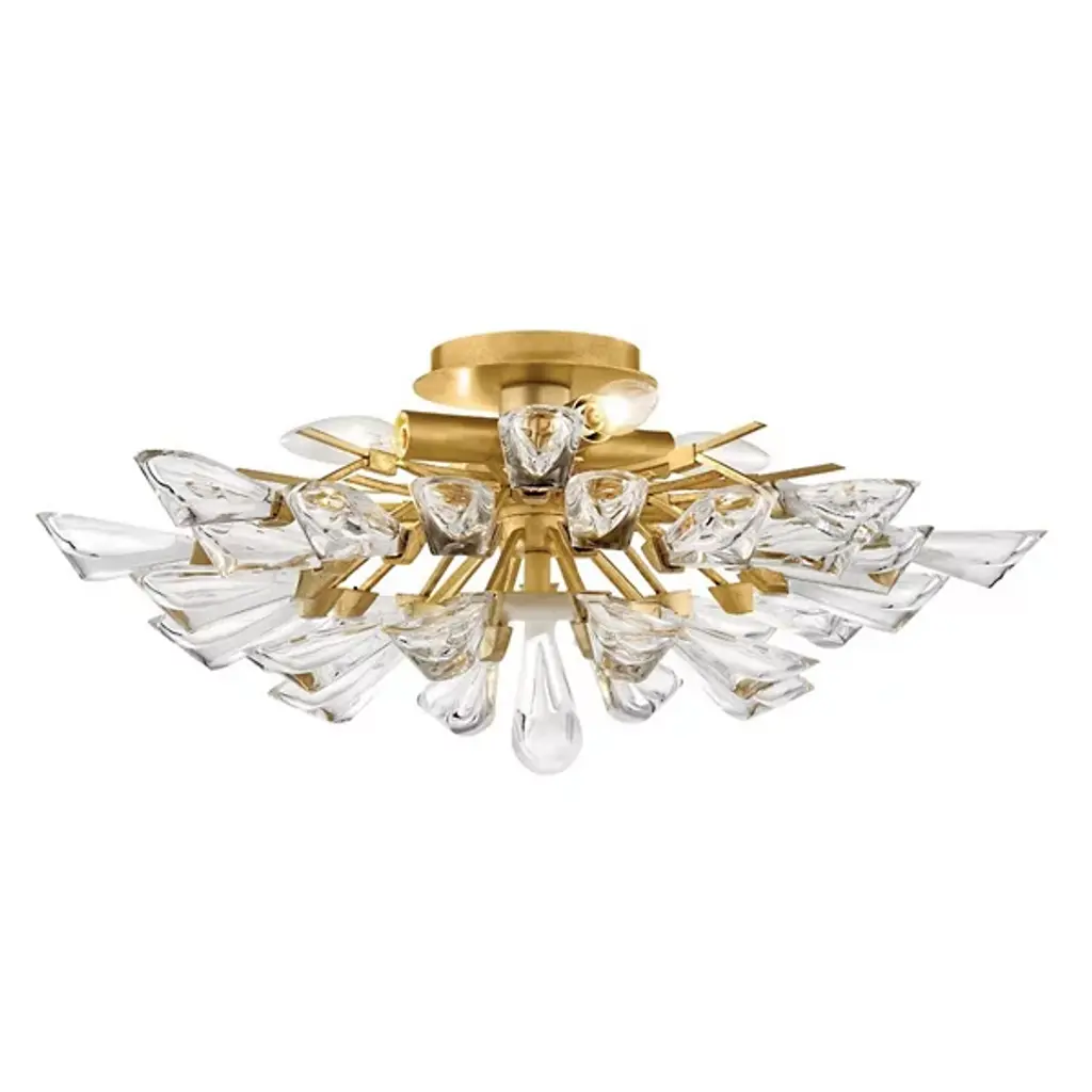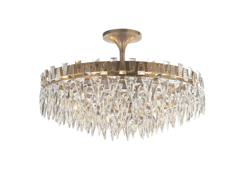 A striking piece, this glittering mounted light adds vibrant drama. Boasting copious dazzling crystal shards set in a brass canopy, its eye-catching design demands attention.Crystal should be kept out of direct sunlight. Direct sunlight hitting the crystal can cause burning or even fire.Dimensions: 21” D | 14.25” H
