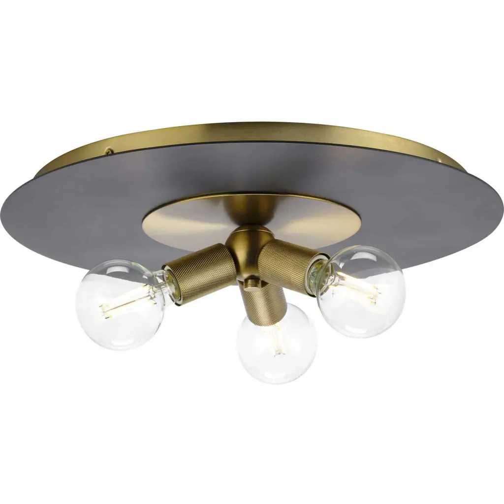 Trimble 3 Light 18 Inch Brushed Nickel Flush Mount Ceiling Light In Burnished Nickel, Design Series