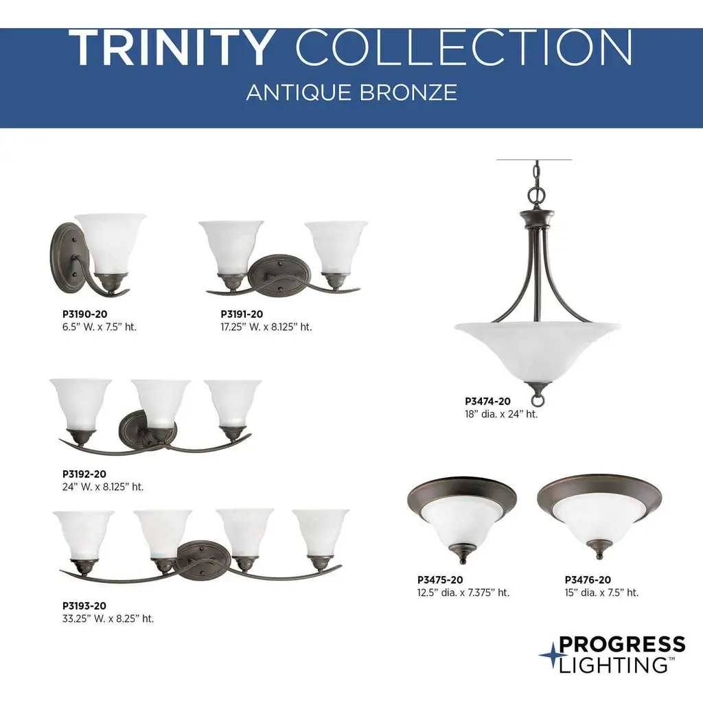 One-light close-to-ceiling fixture featuring soft angles, curving lines and etched glass shades. Gracefully exotic, the Trinity Collection offers classic sophistication for transitional interiors. Sculptural forms of metal and glass are enhanced by a classic finish. This transitional style can transform a room or your whole home with its charming versatility. Antique Bronze finish.