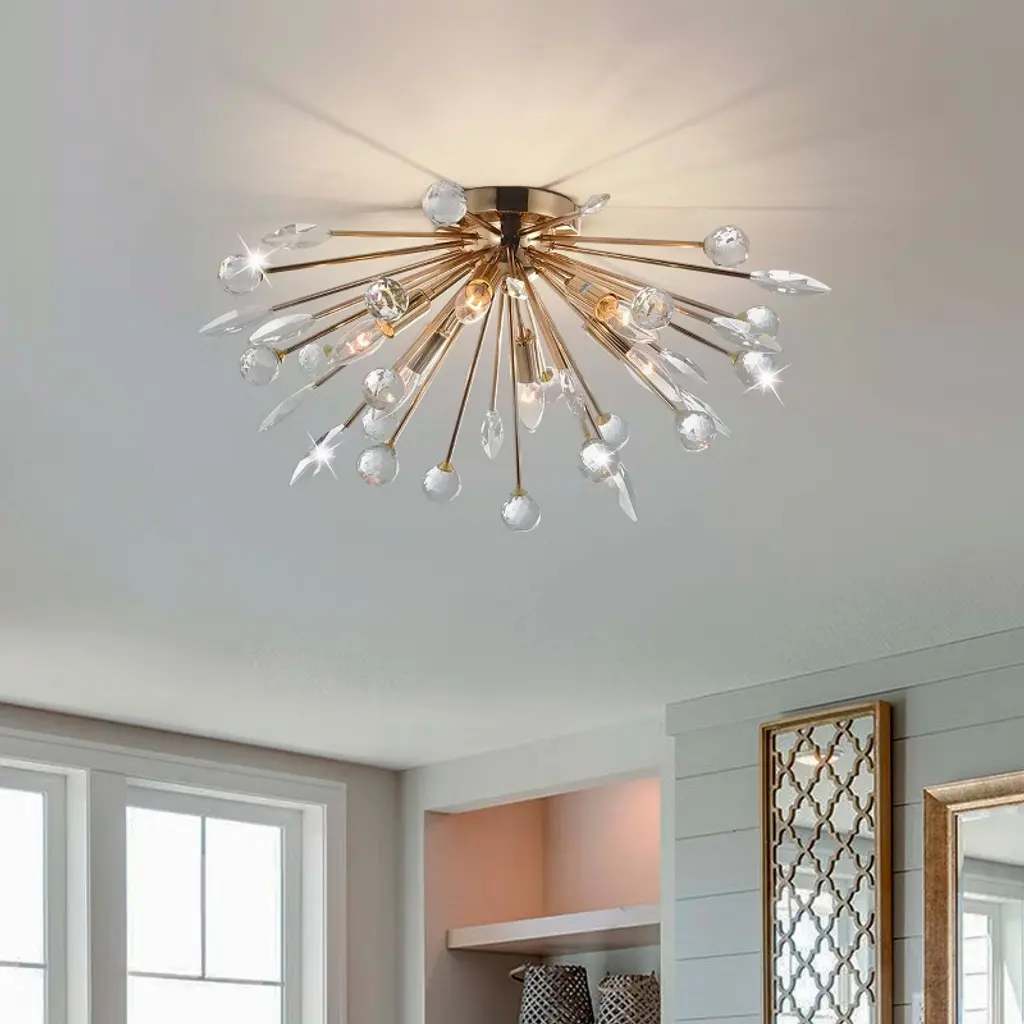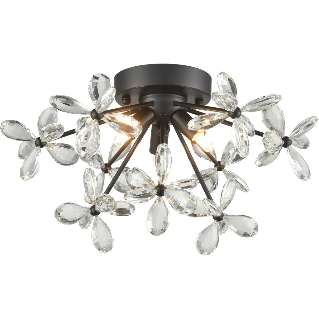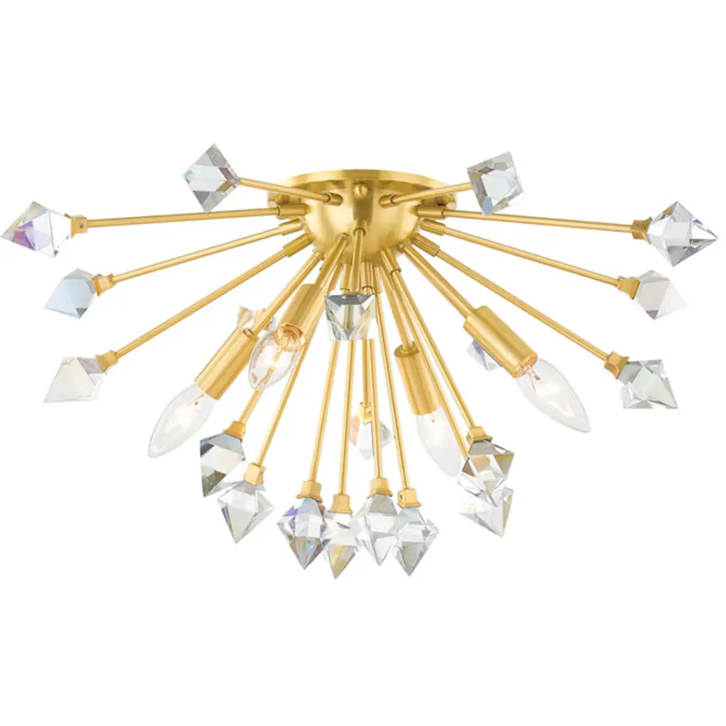 Bring warmth and elegance to your favorite space with the Tulip Flushmount from Hudson Valley Lighting. This piece enhances the modern home with a pleasing contrast of metal and crystal glass. Mounting close to the ceiling, the smooth metal frame extends four evenly-spaced bulbs and drops a series of thin arms that end with clean K9 crystal pieces. The bulbs emit a welcoming, even layer of illumination that interacts with the crystal for an impressive ambiance.