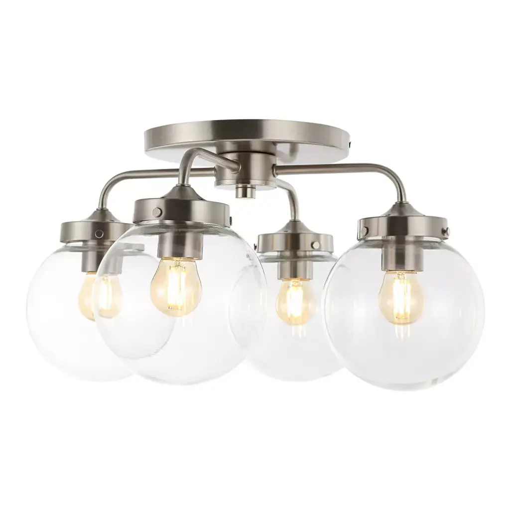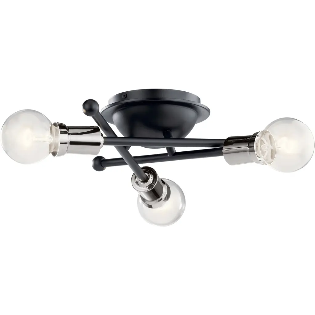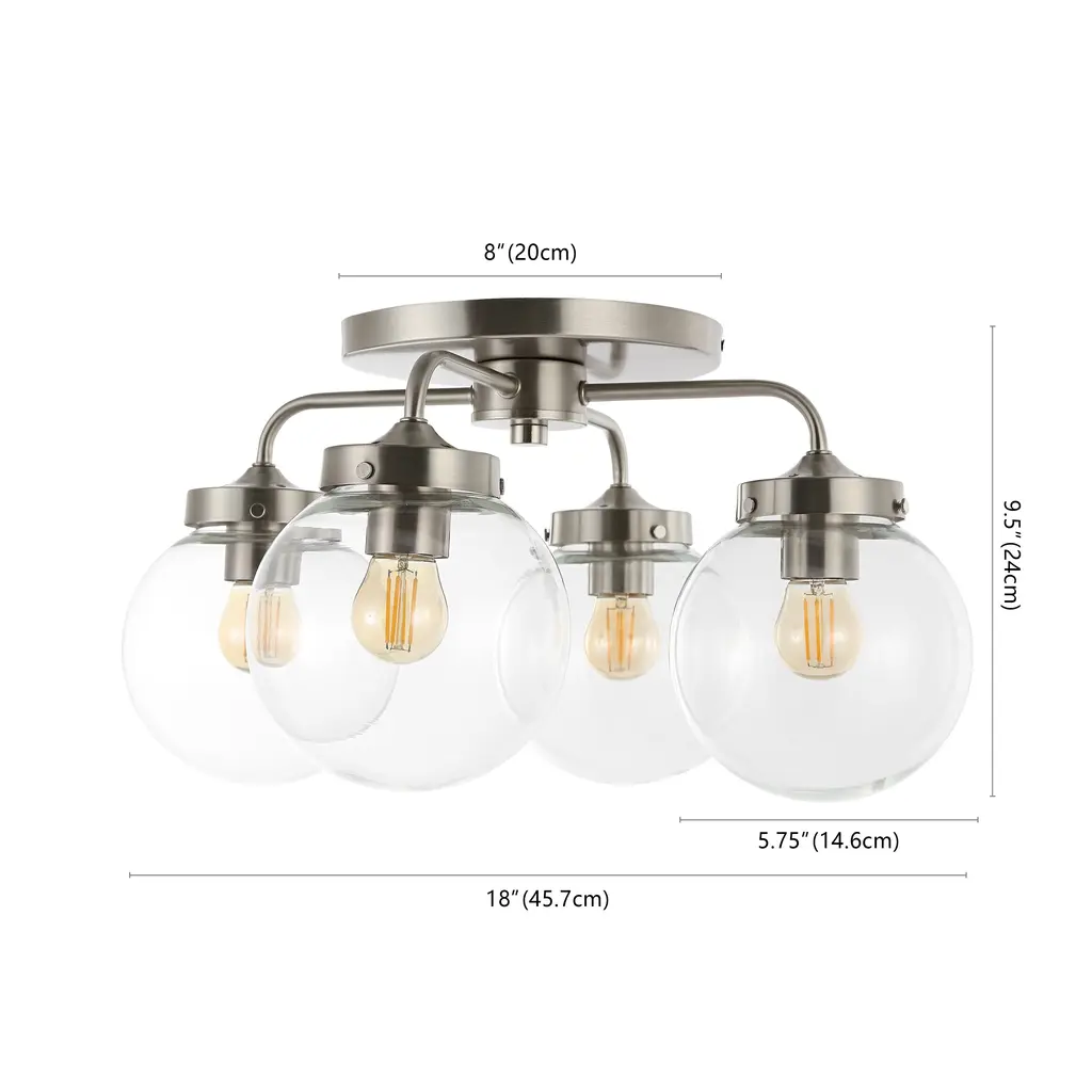 Generous light wherever you need. The Turner Flushmount from Alder & Ore livens up a room as a group of radiant bare bulbs. The flushmount’s low-profile design makes it a welcome addition to low-ceilings. The piece gets your attention with its solid steel construction. From the canopy, slender arms bend outwards in charming curves. A globe accent sitting in between the arms gives off a wondrous quality as a reflective display. Twist in a few classic globe lamps to the barrel-shaped holders for a glamorous touch and a rich, warm light.