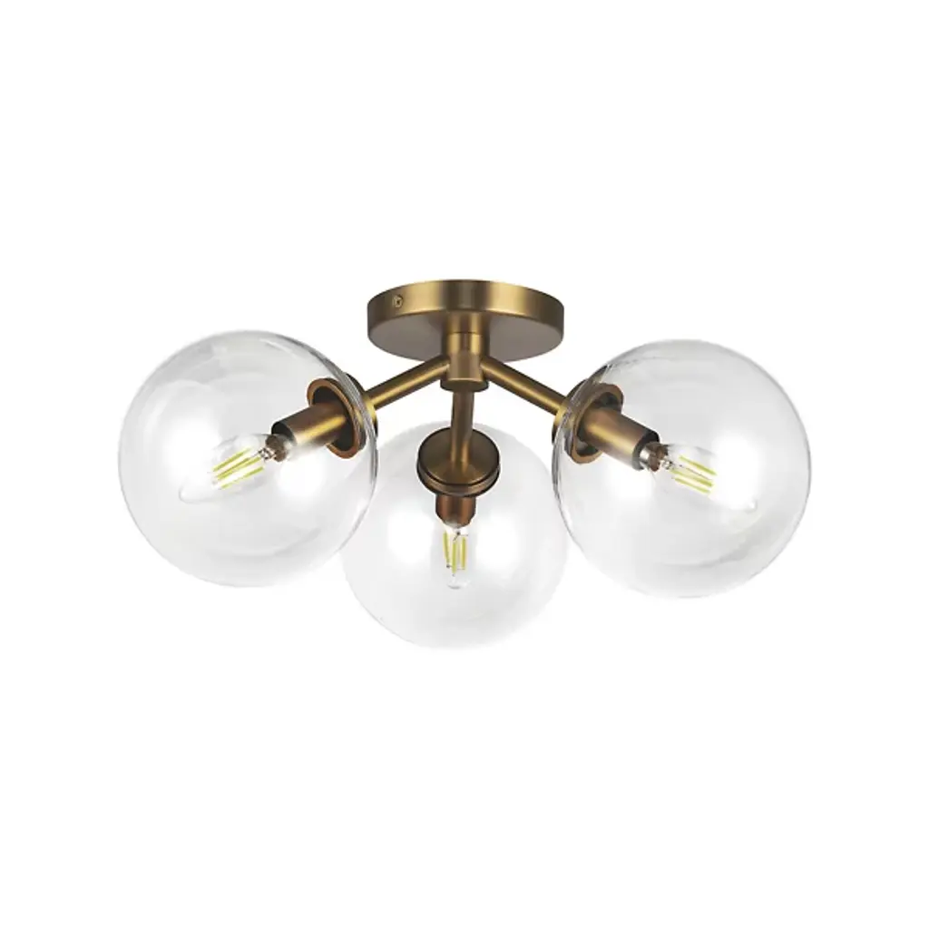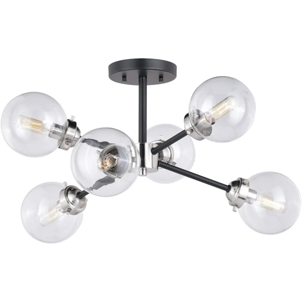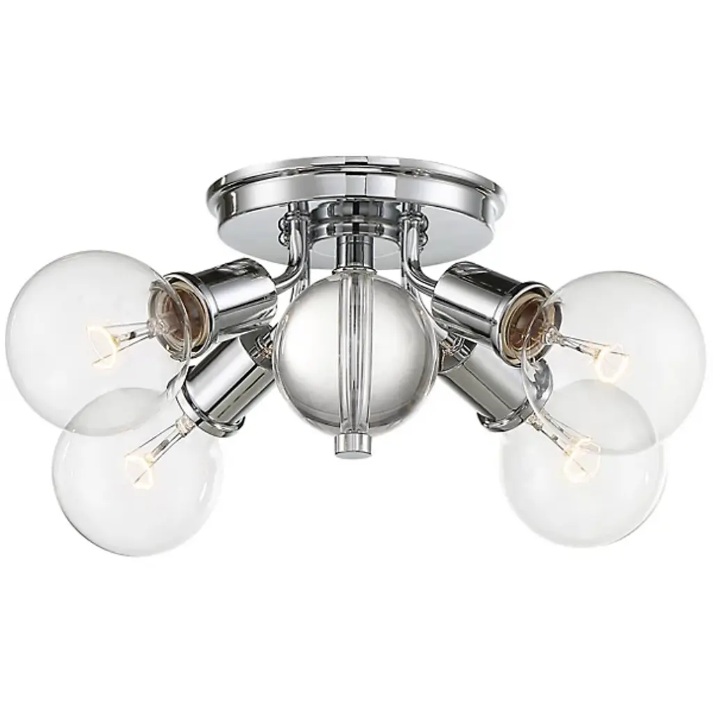 Generous light wherever you need. The Turner Flushmount from Alder & Ore livens up a room as a group of radiant bare bulbs. The flushmount’s low-profile design makes it a welcome addition to low-ceilings. The piece gets your attention with its solid steel construction. From the canopy, slender arms bend outwards in charming curves. A globe accent sitting in between the arms gives off a wondrous quality as a reflective display. Twist in a few classic globe lamps to the barrel-shaped holders for a glamorous touch and a rich, warm light.