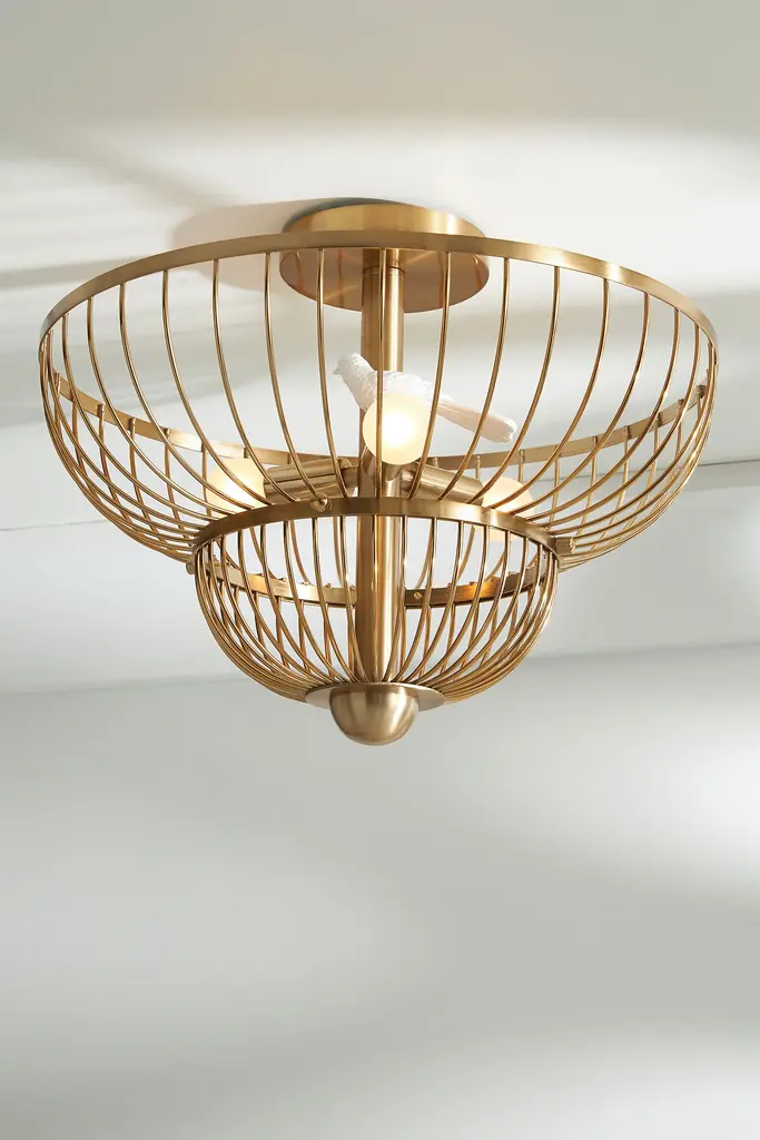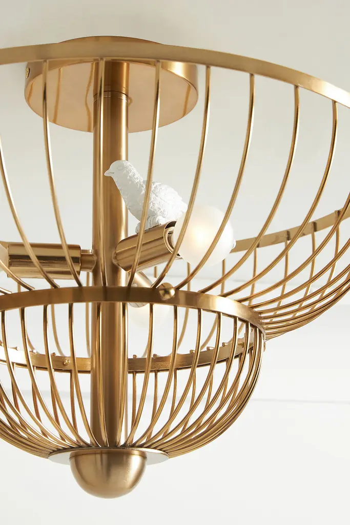For a covered porch or foyer wall, opt for a sculptural showstopper, like this flush mount from our high-flying Twiggy collection. With a cage-inspired frame and a resin bird perched on an array of glass bulbs, it offers a fanciful display that's sure to draw attention anywhere in your home. This item is UL listed, meaning it has been tested and approved to meet the government-regulated safety standards for the USA. Use with electrical outlets 110-120v or lower, as anything higher can cause fire or injury. If you're purchasing this item for use outside of the United States, employ the adapter and voltage converter suited for your country.