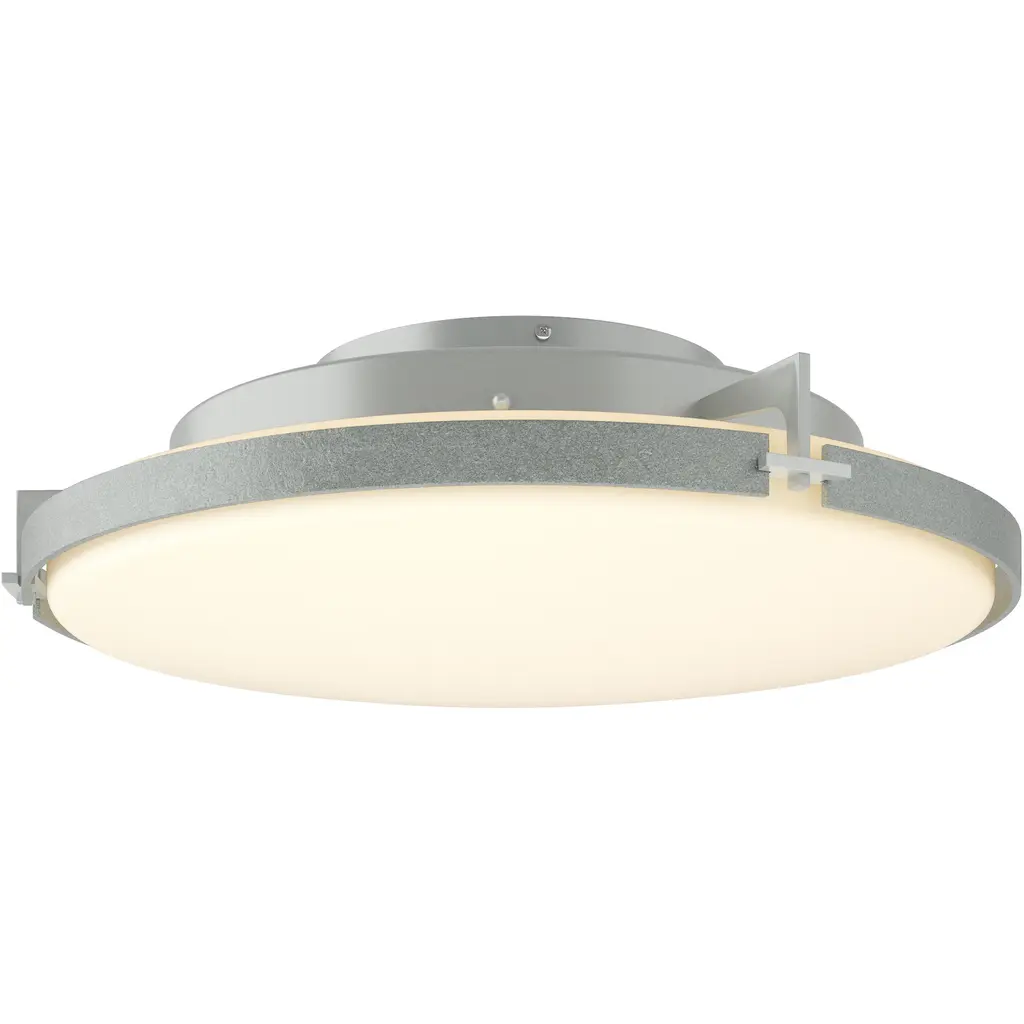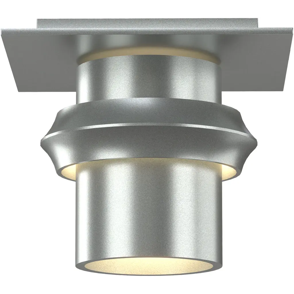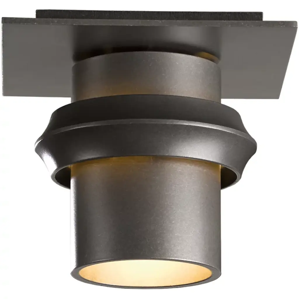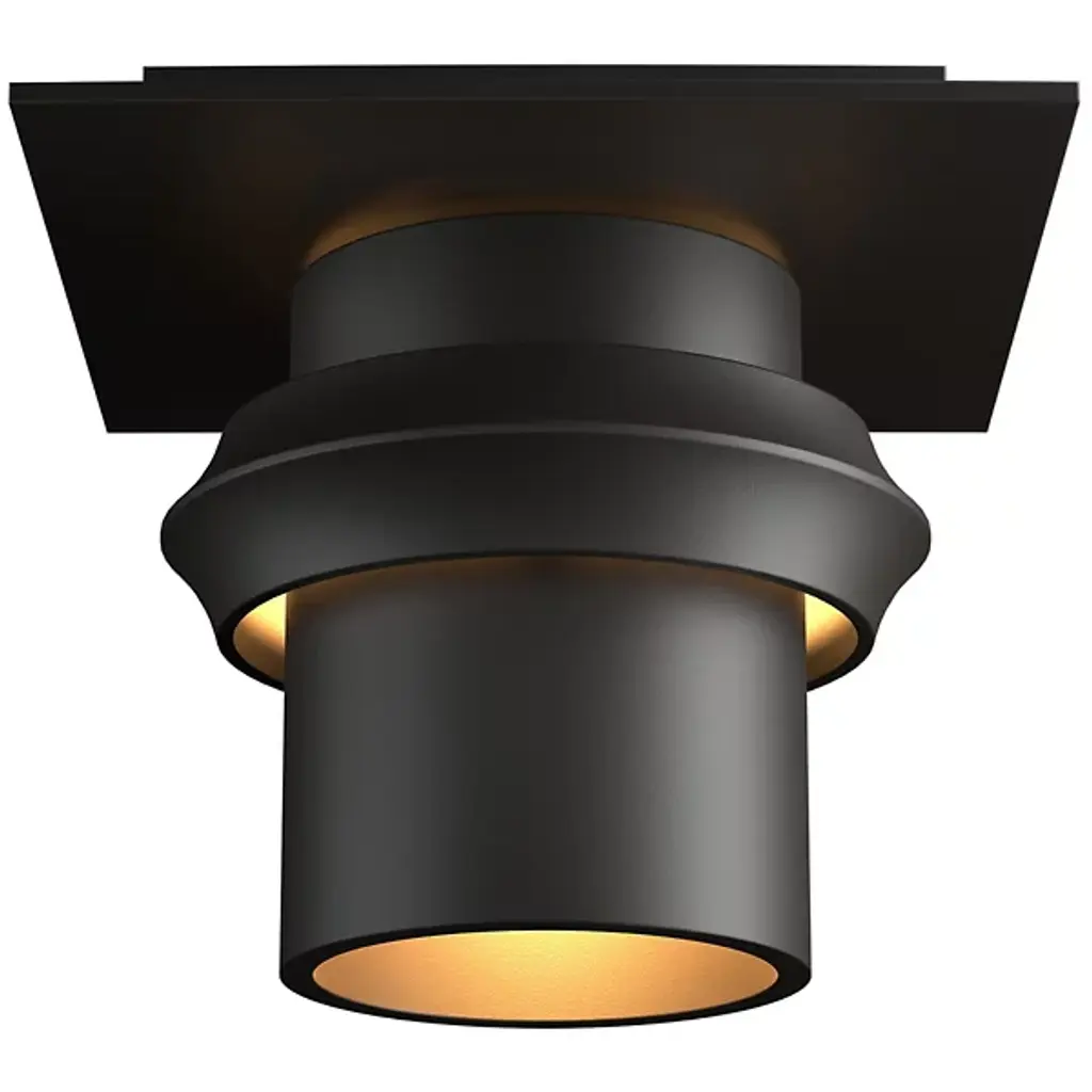 The Twilight Flushmount from Hubbardton Forge is a polished piece that’s straightforward and extremely stylish. Three distinct, yet key shapes make up the structure. It features a sleek rectangular mount, a cylindrical lampshade, and a lovely pinched metal accent. All the distinct pieces uniquely capture and reflect light. The cylindrical form funnels its golden bulbs light downwards to produce a focused, vibrant light. It works nicely in living rooms needing a touch of extra light or along a hallway.