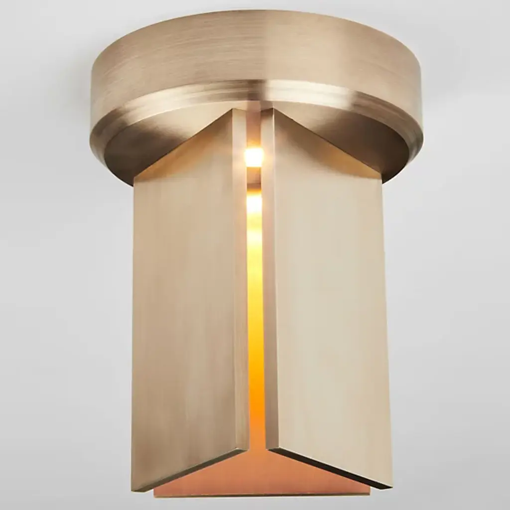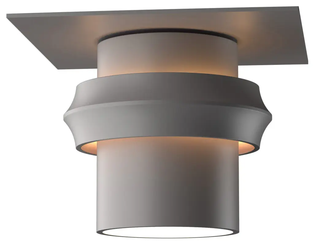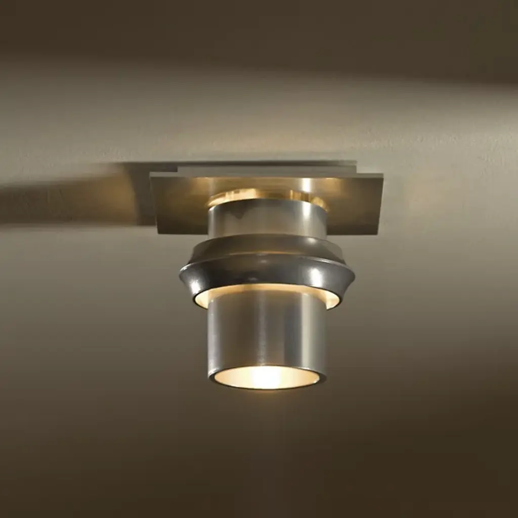The Twilight Flushmount from Hubbardton Forge is a polished piece that’s straightforward and extremely stylish. Three distinct, yet key shapes make up the structure. It features a sleek rectangular mount, a cylindrical lampshade, and a lovely pinched metal accent. All the distinct pieces uniquely capture and reflect light. The cylindrical form funnels its golden bulbs light downwards to produce a focused, vibrant light. It works nicely in living rooms needing a touch of extra light or along a hallway.