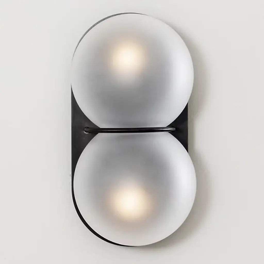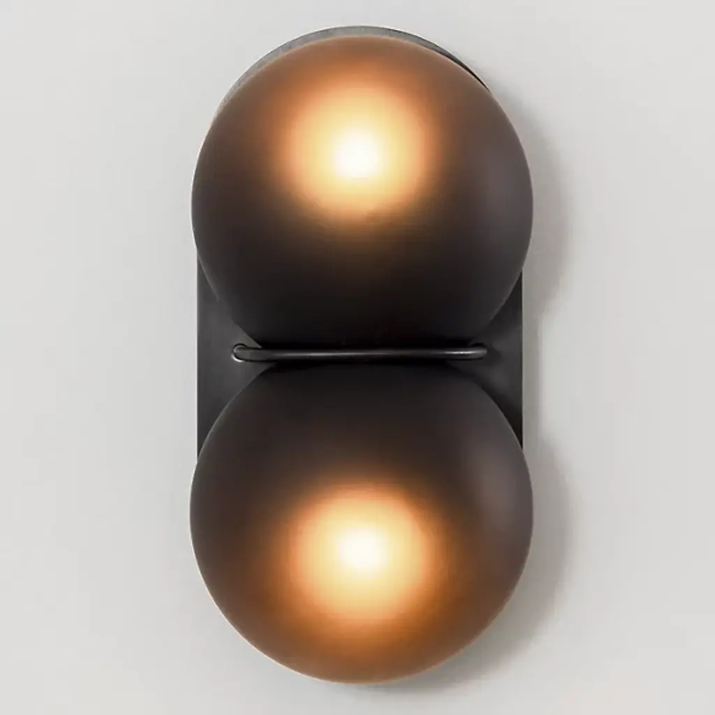 The Twin Wall / Flushmount from SkLO is an elegant and artful composition showcasing the beauty of handblown glass. A solid brass backplate anchors the piece to the wall and sends a slender curved arm forward to band a set of stacked flattened spheres. Crafted by skilled Czech glassblowers, this fixture features a unique form that ensures no two pieces are the same. Designed by Karen Gilbert and Paul Pavlak, this piece expresses the art of glasswork while infusing a room with soft light.