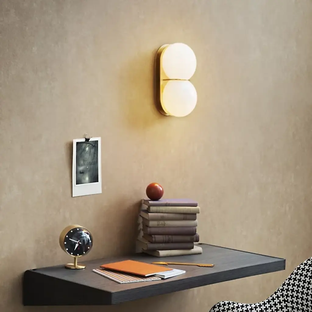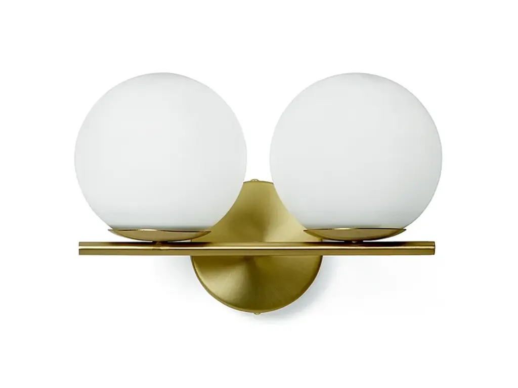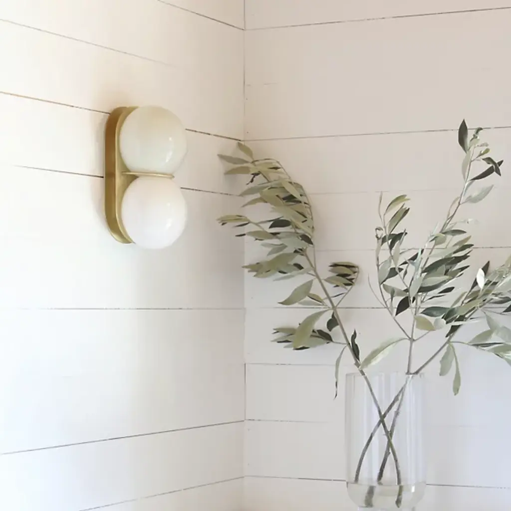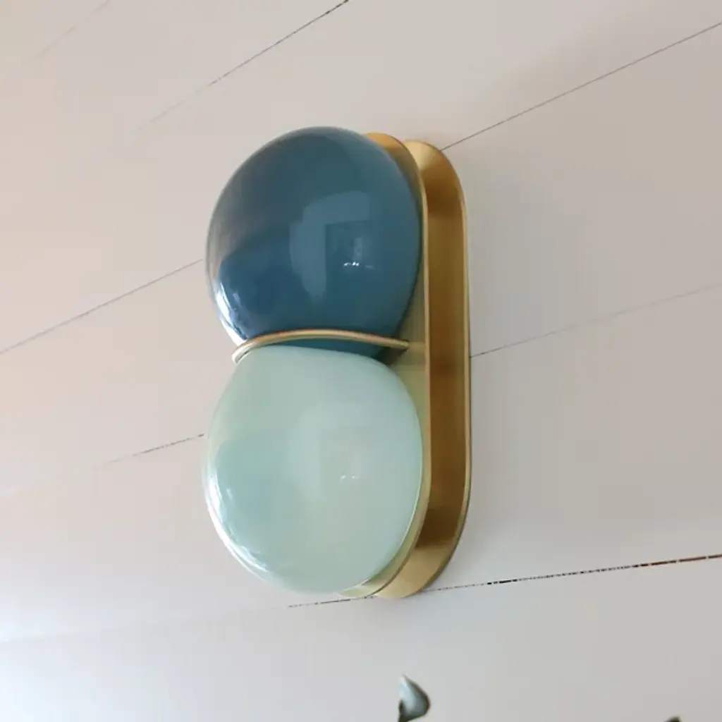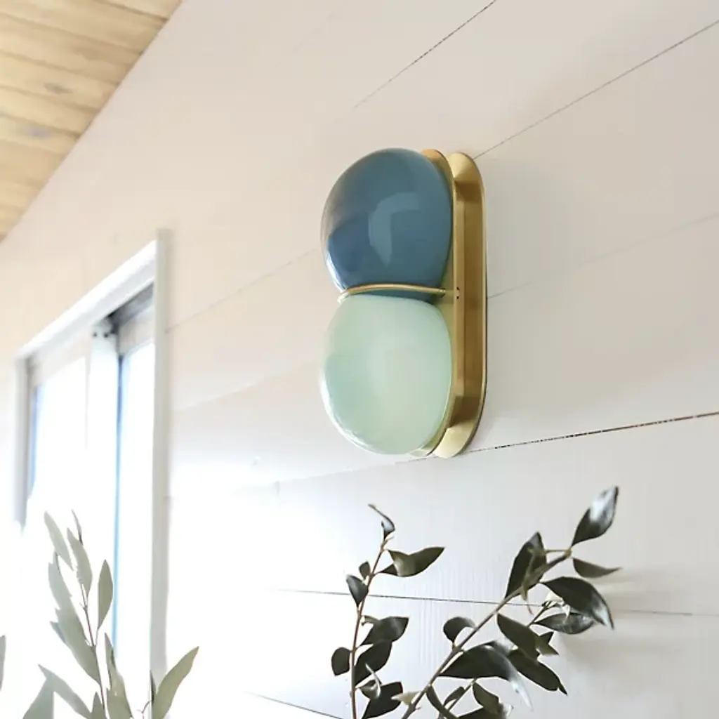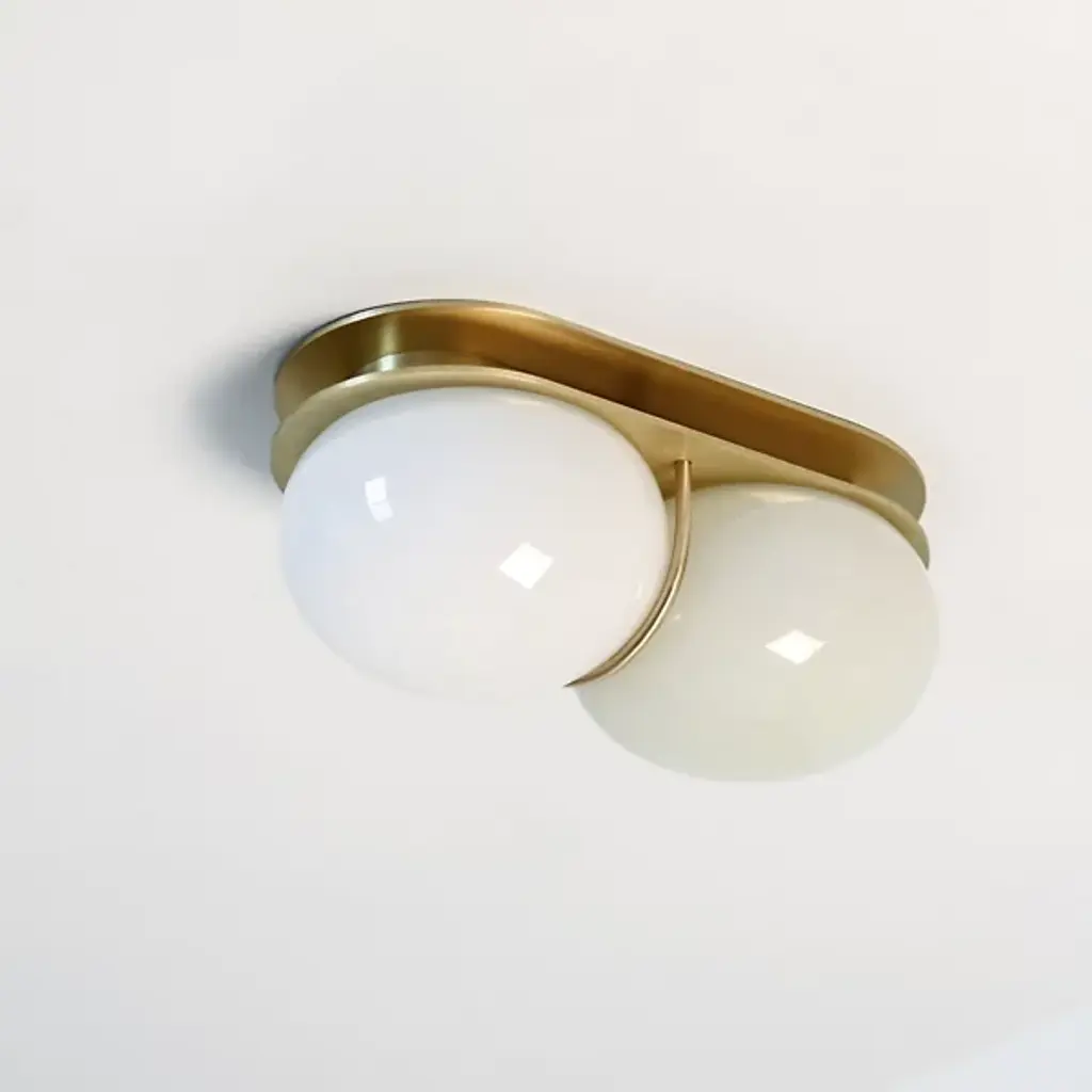 The Twin Wall / Flushmount from SkLO is an elegant and artful composition showcasing the beauty of handblown glass. A solid brass backplate anchors the piece to the wall and sends a slender curved arm forward to band a set of stacked flattened spheres. Crafted by skilled Czech glassblowers, this fixture features a unique form that ensures no two pieces are the same. Designed by Karen Gilbert and Paul Pavlak, this piece expresses the art of glasswork while infusing a room with soft light.