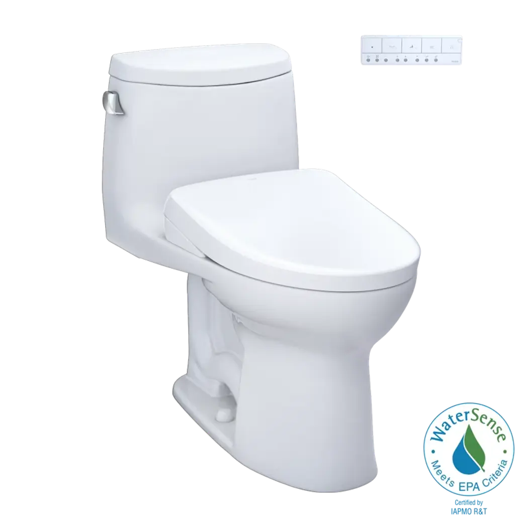 The TOTO T40 WASHLET+ UltraMax II One-Piece Elongated 1.28 GPF Toilet and Contemporary Auto Flush WASHLET S7A Bidet Seat is designed to conceal the WASHLET power cord and water supply hose for a seamless installation. The WASHLET S7A features TOTO's technologically advanced EWATER+ system that mists the wand and toilet bowl, reducing the need for harsh cleaning chemicals. PREMIST wets the surface of the toilet bowl, aiding in the removal of waste and resulting in a better clean. The TOTO WASHLET S7A is fully automated, including an illuminated remote control with 5 spray settings, auto open and close lid, heated seat, and instantaneous water heating. The UltraMax II features TOTO’s TORNADO FLUSH, a hole-free rim design with dual-nozzles that creates a centrifugal washing action that assists in rinsing the bowl more efficiently. This version of the TOTO UltraMax II includes CEFIONTECT, a layer of ceramic glaze that minimizes waste from sticking to ceramic surfaces. This feature, coupled with the WASHLET PREMIST and TORNADO FLUSH, assists to reduce the frequency of toilet cleanings, minimizing the usage of water, harsh chemicals, and time required for cleaning. The new auto flush kit provides a hands-free automatic flush after every use. No need to touch buttons or handles, and never worry about someone forgetting to flush. The TOTO UltraMax II is designed in TOTO’s Universal Height, which allows for a more comfortable seat position across a wide range of users.This WASHLET+ includes the WASHLET with water supply adapter, UltraMax II bowl and tank set with hardware, and toilet bolt caps. Compatible with T40 WASHLET+ toilet bowl components only. Additional items needed for installation must be purchased separately: wax ring, toilet mounting bolts, and toilet water supply lines.