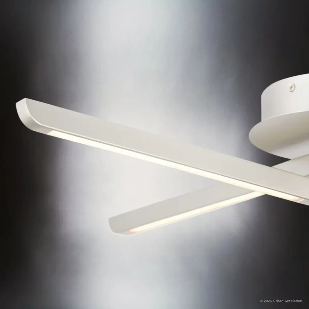 The Scranton Collection of light fixtures is a perfect blend of modern, minimalist design and advanced lighting technology. The collection features an indoor ceiling light and chandelier, sleek and geometric fixtures that don a smooth, matte white or matte black finish. The chandelier features a central hub from which several straight arms extend horizontally, each arm featuring a unique, upward bend at the end. LED light sources come integrated into the ends of the arms, providing a subtle and seamless lighting effect. The chandelier is suspended from the ceiling by a single, straight rod, maintaining the fixture’s minimalist aesthetic. The Scranton LED linear ceiling light, the other fixture in the collection, features a sleek, modern design with a minimalist aesthetic. It consists of a central hub with four linear arms extending outward in a cross pattern. Each arm houses integrated LED lights, providing clean and efficient illumination. The LEDs are positioned along the underside of each arm, directing light downwards for effective ambient lighting. The Scranton ceiling lights are designed to be mounted flush to the ceiling, making them suitable for rooms with lower ceilings or where a streamlined look is desired. The open design and finish of the fixtures help maintain an airy feel, preventing them from dominating the space visually.