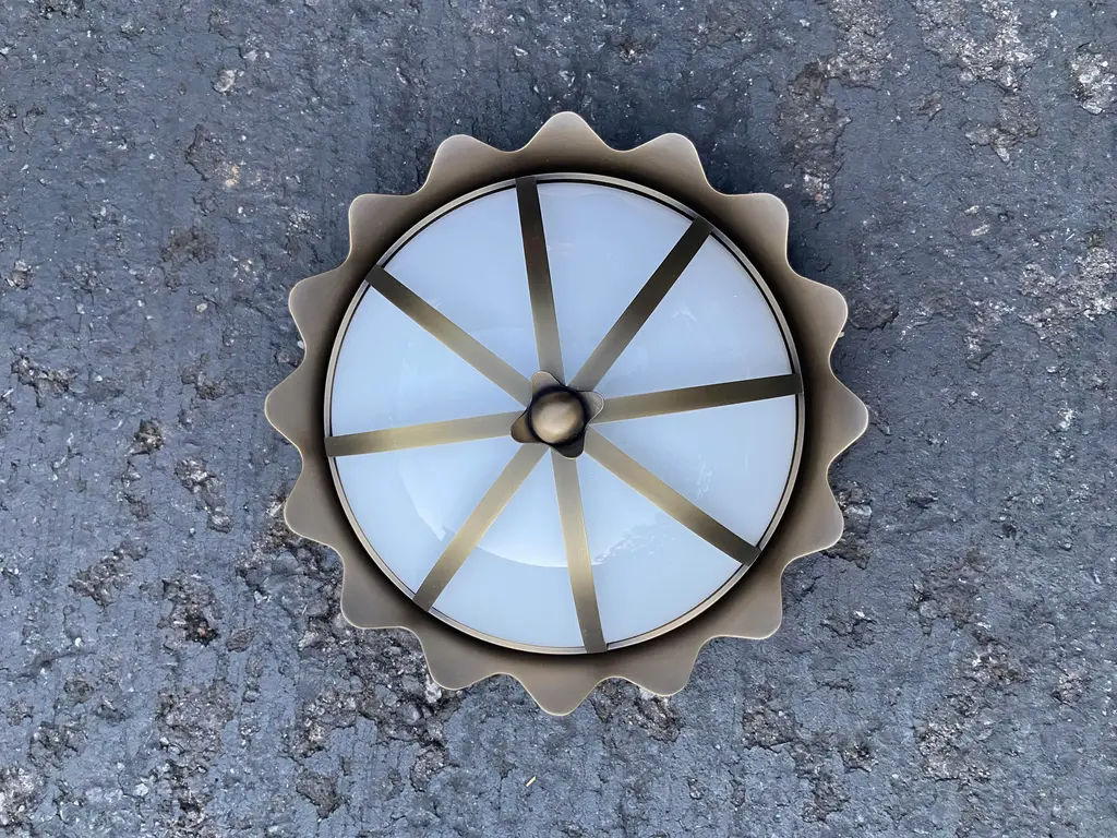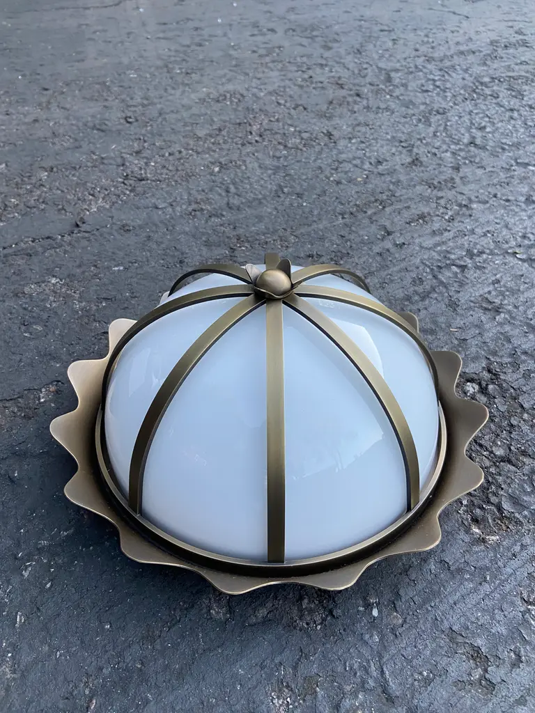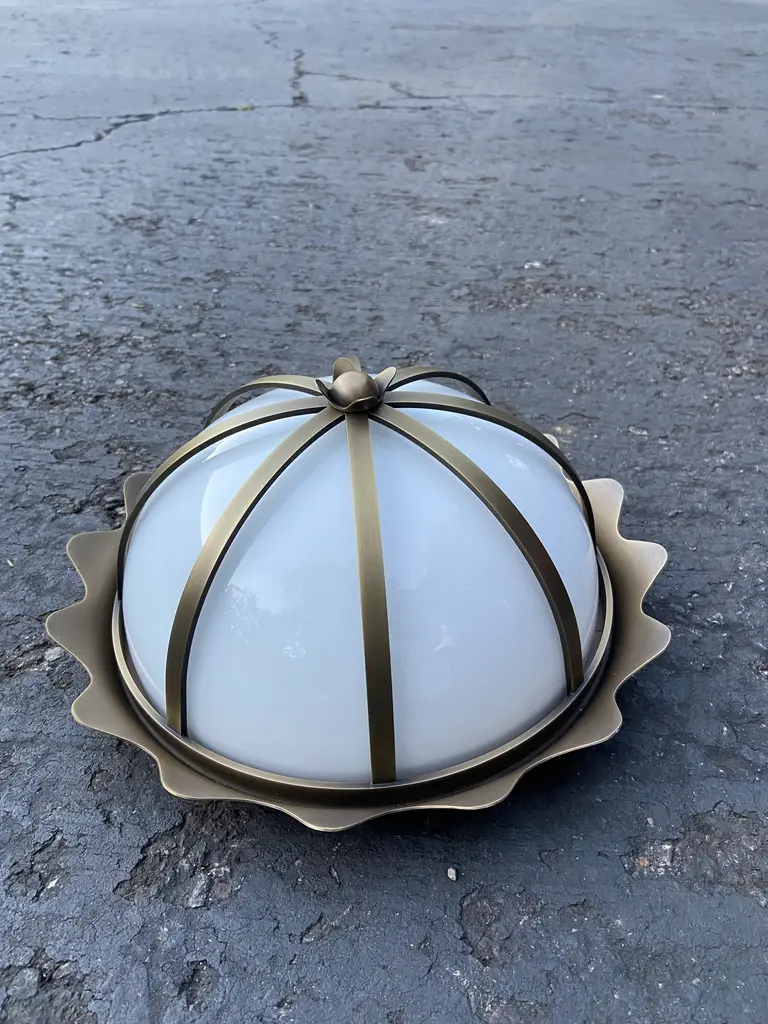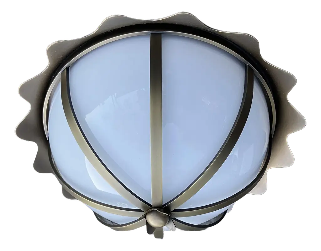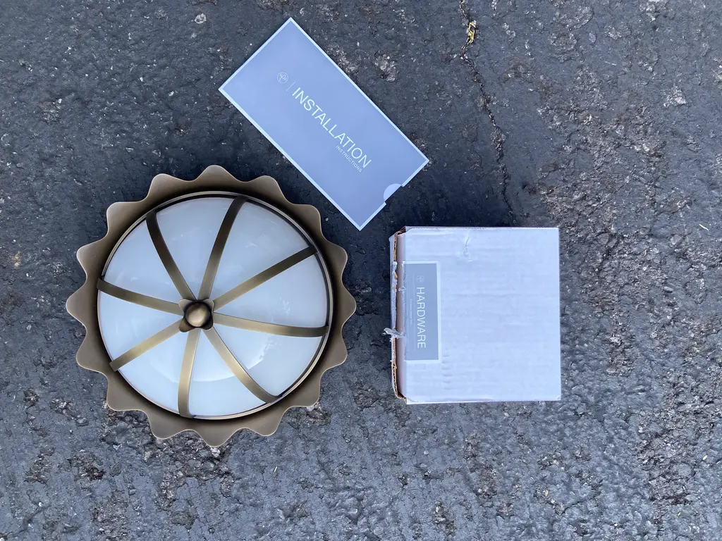 Beautiful, new without original box, Crown flushmount by Urban Electric. A unique piece, suited for both classic and contemporary spaces. Selling two in the bronze finish, price is for single piece. Hardware, installation instructions and two new Tala incandescent bulbs. Dimensions: Width 11.75in Height 5in Depth 11.75in X 10in Mounting: Weight 9lbs Canopy 10in x 0in Junction Box 4in oct/rnd Rating: Suitable for DAMP locations UL Listed Maximum Wattage (2) 40W C