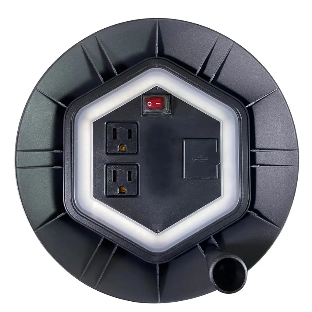 Whether it’s for your personal work garage or a jobsite, USW cord reel is the ideal power station to keep your small appliances, electrical devices, or tools connected. Attached to the cord reel is a 14/3, 50 feet extension cord and a built-in LED area light. The flush-mounted area light can produce 550 lumens which are perfect for dark or confined spaces. In the middle of the drum reel, there are 2 grounded outlets and 2 USB ports. The drum reel is constructed with durable, scratch-resistant PVC while the handle and the base are metal. The compact profile along with the easy carry handle allows you to effortlessly transport this power station from one area to the next. Above all, this cord reel is rated for outdoor use, providing you reliable power in damp or wet locations.