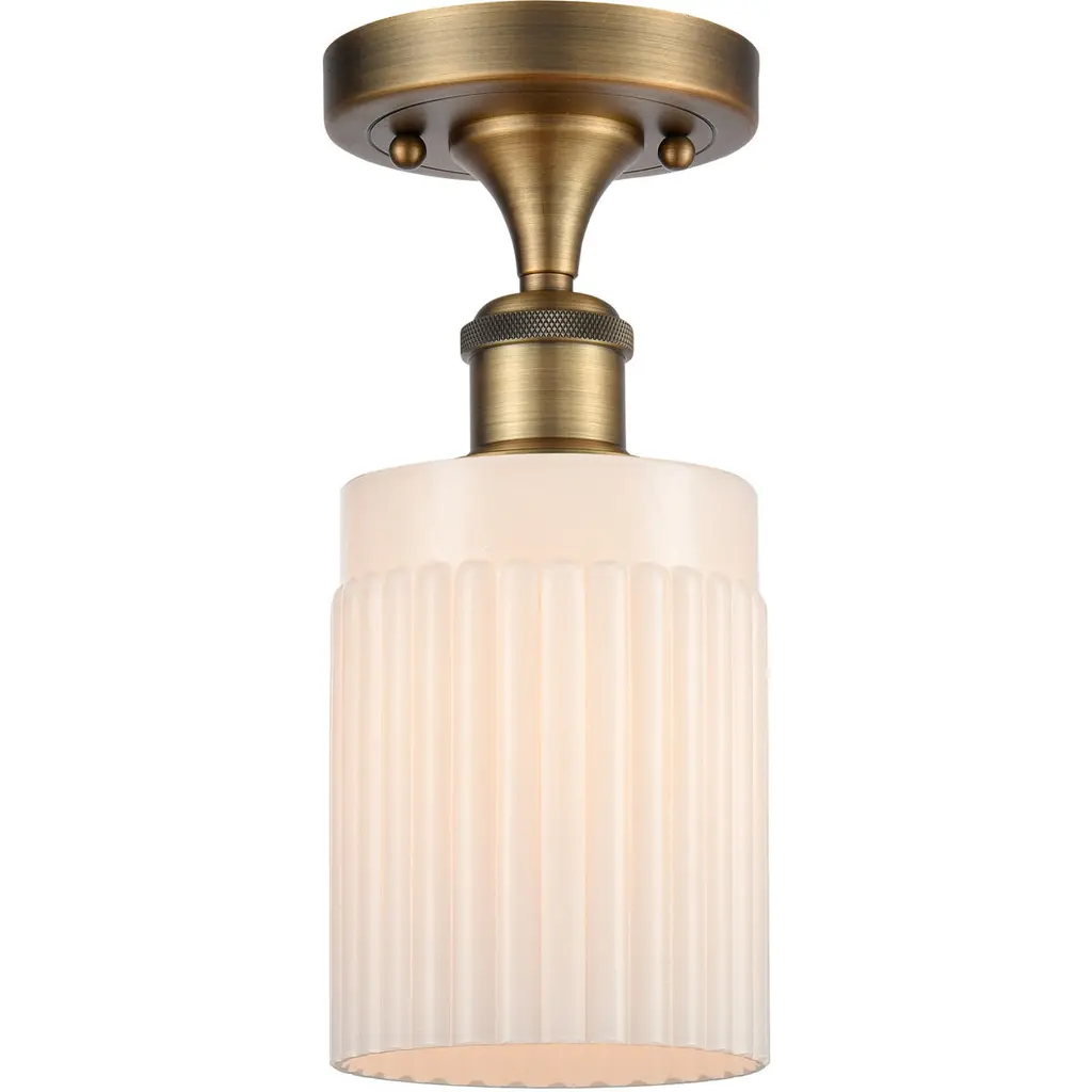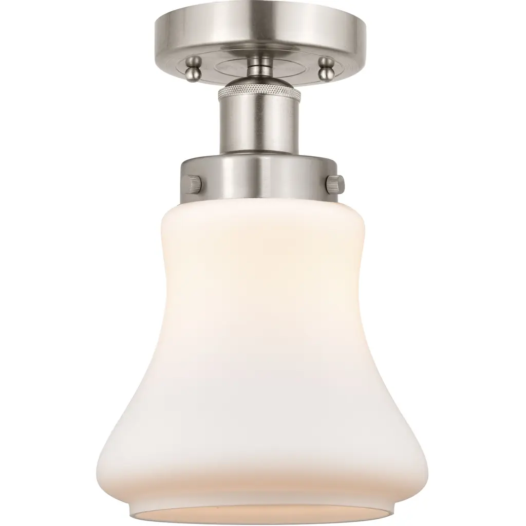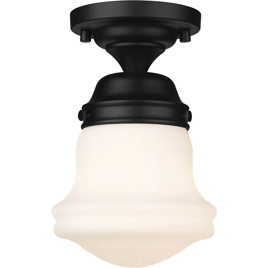 Infused with character, a modern one-light flush mount ceiling light is the perfect upgrade for your bedroom, den or hallway. Its matte opal schoolhouse glass brings exquisite vintage character, while a luxe gold finish ensures a contemporary ambiance that suits modern living. This close-to-the-ceiling fixture is ideal for rooms with lower ceilings in need of bright, diffused illumining.