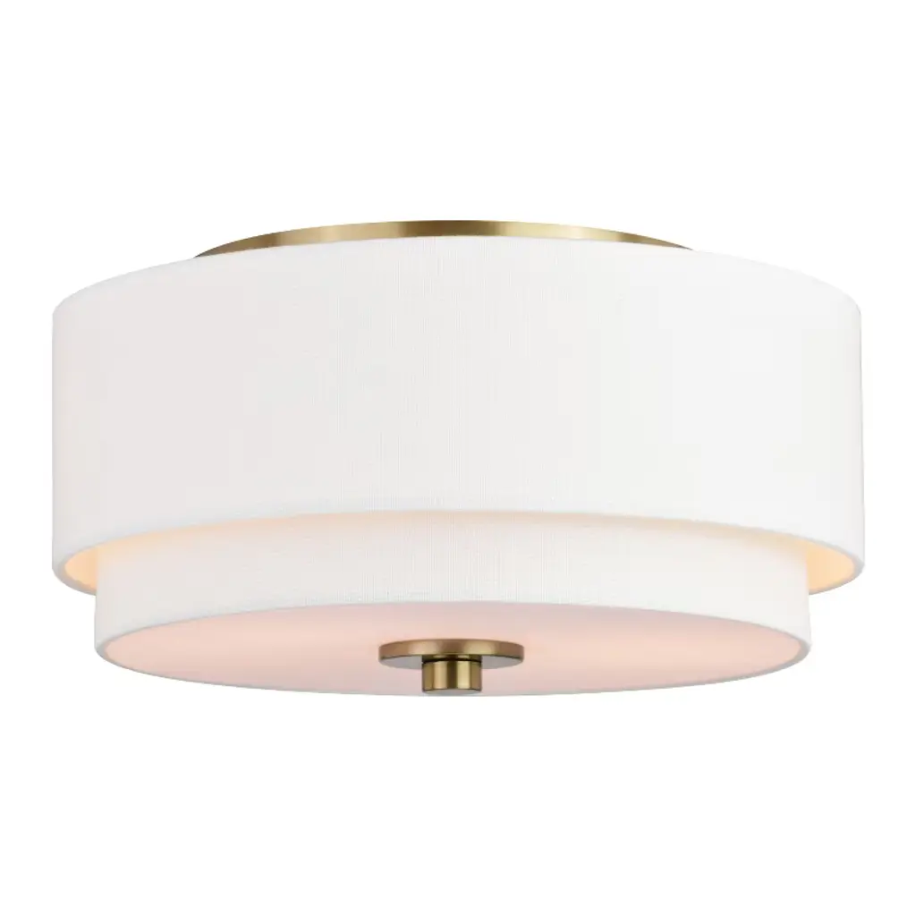 Vaxcel Burnaby 13-in W Mid-century Modern Flush Mount Ceiling Light Fixture White Fabric Drum Shade, Matte Brass